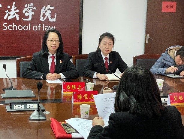 对皮轶之庭长一行表示热烈的欢迎。陈爱武教授宣读了党建共建的指导原则、主要目标、具体形式和内容。随后,陈爱武教授与皮轶之庭长在热烈的掌声中签署了共建协议。