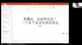 论坛的第九单元也即最后一单元由上海交通大学李学尧教授主持。澳门大学副教授翟小波、中国人民大学教授陈景辉先后做了《全面的,还是中立的?——一个关于宪法性质的理论》《关于宪法学与宪法:对一些批评意见的回应》的报告。翟教授首先对宪法全面主义进行了介绍与否定。宪法全面主义不仅伤害宪法,也伤害其他法,伤害自由和多元的社会秩序,宪法因此变成了包治百病的万灵药,宪法理论变成了百科全书式的正义理论。翟教授认为,宪法是且仅是构造和规范最高权之法,是中立的最高后设规范:它是具有一系列独特属性的规范体系。这种中立宪法的概念至少有四个维度:法律之维、道德之维、文化之维、政治之维。翟教授主张有限的法律宪法主义。陈教授的报告主要包括两部分:宪法学部分和宪法部分。陈教授认为对于法理学问题的回答,宪法和部门法的关系是很好的出发点,甚至是唯一的出发点。他认为法体系本就是一个诸法联邦,其他部门法相当于各个州,宪法是唯一一个与其他部门法发生性质关联的法律,其他部门法不能直接与后设问题有关,必须借道宪法,只有宪法能被提出后设问题,能够进入“法律是什么”的命题。由此陈教授提出了自己反对的几个观念。第一个是反对一般性的法律定义,第二个是反对一种大秦式的法律帝国,第三个是反对比喻用法。文章中主要讨论几个具体的问题,首先是宪法的具体化,其次是宪法法典化问题。陈教授认为宪法典是宪法的性质,不成文化是错的。报告中关于哈特的承认规则理论、宪法与部门法的关系以及宪法的性质等问题引起了线上与会学者们的激烈讨论与批评建议。