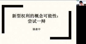 论坛第三单元由吉林大学李拥军教授主持,上海师范大学讲师骆意中做了《新型权利的概念可能性:尝试一辩》的主旨发言。骆意中老师的论文主要是从霍菲尔德的框架入手,尝试证明在概念上可能存在着新型权利的观点的。总体上分为四个部分,第一部分是讨论新型权利的前景是暗淡的。第二部分是新的主张权,同一来源与同一权利问题回应对没有新主张权的质疑,第三部分是权利与权利的边界,第四部分是证成而非内容回应脱离霍菲尔德框架便无法产生新权利的质疑。朱振教授、于柏华副教授、陈景辉教授先后做了评议。