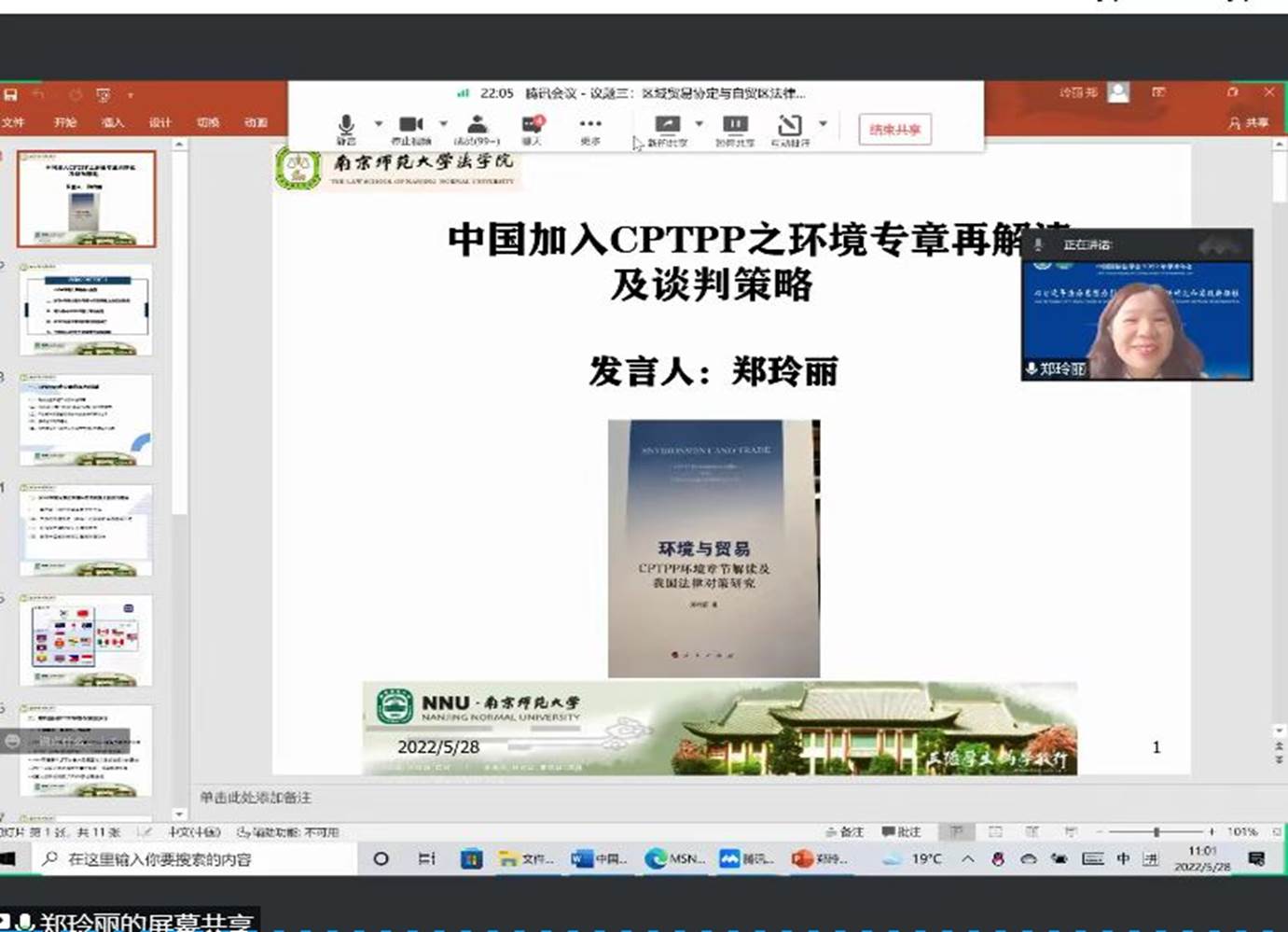 、中国法治现代化研究院郑玲丽副教授以《中国加入CPTPP之环境专章再解读及谈判策略》为主题做了精彩发言。该组报告人及其汇报还有南开大学博彩网址大全