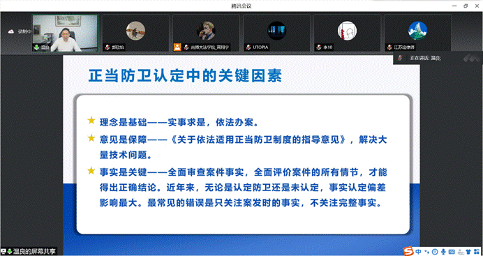 20周年院庆系列讲座之“刑事法理论与实务前沿”讲座第二期“正当防卫在司法实务中的运用”通过腾讯会议在线举行。本次讲座邀请到了江苏省苏州市人民检察院党组副书记、副检察长王勇担任主讲人,由博彩网址大全-中国博彩网址