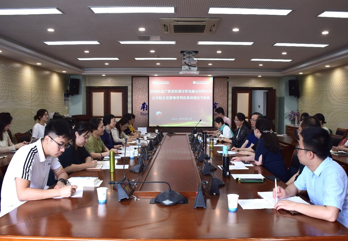 2021年6月8日上午,广西壮族自治区高级人民法院何艳斌专委带领广西三级法院一行7人来南师大博彩网址大全