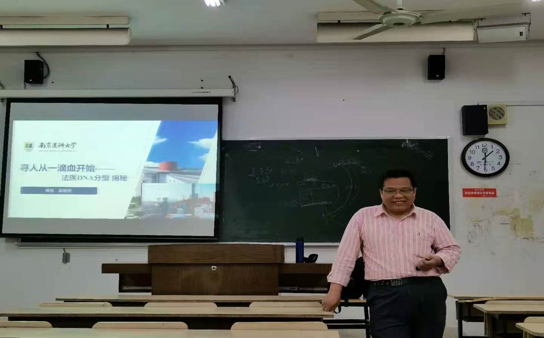 5月19日星期三下午,南京医科大学法医学系冀强副教授应邀来我校仙林校区学海楼220教室开设虚拟仿真实验课程建设系列讲座之一——《寻人从一滴血开始——法医DNA分型揭秘》。室外大雨倾盆,而室内秩序井然,讨论声不绝于耳。