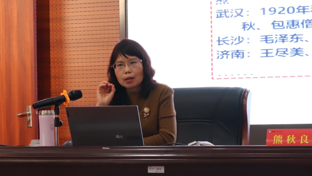 熊秋良教授以“中国共产党人的初心和使命”为题,结合学习贯彻习近平总书记在党史学习教育动员大会上的重要讲话精神,深刻阐述了开展党史学习教育的重大意义,内容为初心与出征、坚定理想信念、全心全意为人民服务和在传承红色基因中开新局。