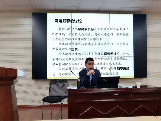喻海松处长就上述十个问题展开讲述,首先为大家简单介绍了司法解释的形式及其制定出台过程。接着结合司法实务案例,指出刑法解释应当综合评估社会危害性,坚持主客观相统一,确保罪责刑相适应。同时指明法律的逻辑演绎结果应当符合一般人的法感情。最后,强调了我国司法实践在借鉴域外经验时应当注意与中国法律传统相结合。