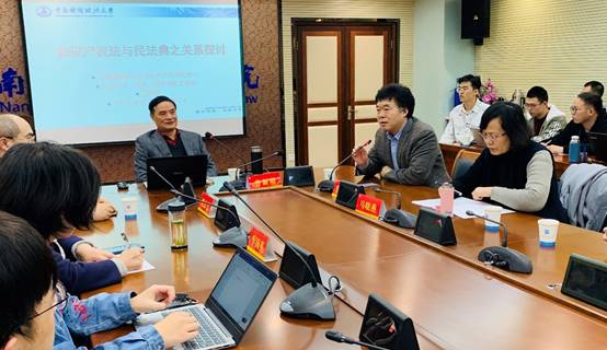 曹新明教授首先向师生们介绍了民法典编纂工作的最新进展,接着就民法典编纂过程中知识产权是否应当独立成编等问题与师生们进行探讨。
