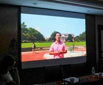 教师致辞之后,上一届的优秀学生代表黄浩进行发言。黄浩学长首先对各位同学表达了祝贺,并且详细地介绍了自己的在马里兰学习生活的感触,鼓励同学们在新的学习生活环境中不断进步,努力进取。