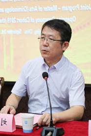 院长蔡道通教授致辞。蔡道通教授提出了几点建议:不同班级之间、不同小组的组员之间多多交流,加强理论和实务的联系。充分利用南师大的教学资源,与老师多讨教、多沟通、让自己养成充分思考的学习习惯,积累下扎实的学术知识,为美国的专业课学习做好准备。在与不同背景的同学相处过程中,能够取长补短,增强自己的学识,提高与人相处的技巧。希望通过这一年在南师大的学习,同学们能在制度遵守方面、专业知识的思考方面、实践运用问题的感悟方面都有极大的提升。