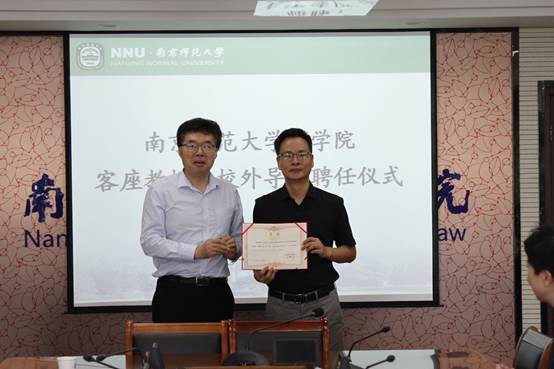 客座教授、校外导师聘任仪式在仙林校区行敏楼434会议室隆重举行。江苏德擎律师事务所主任、南京师范大学校友王树平律师受聘博彩网址大全