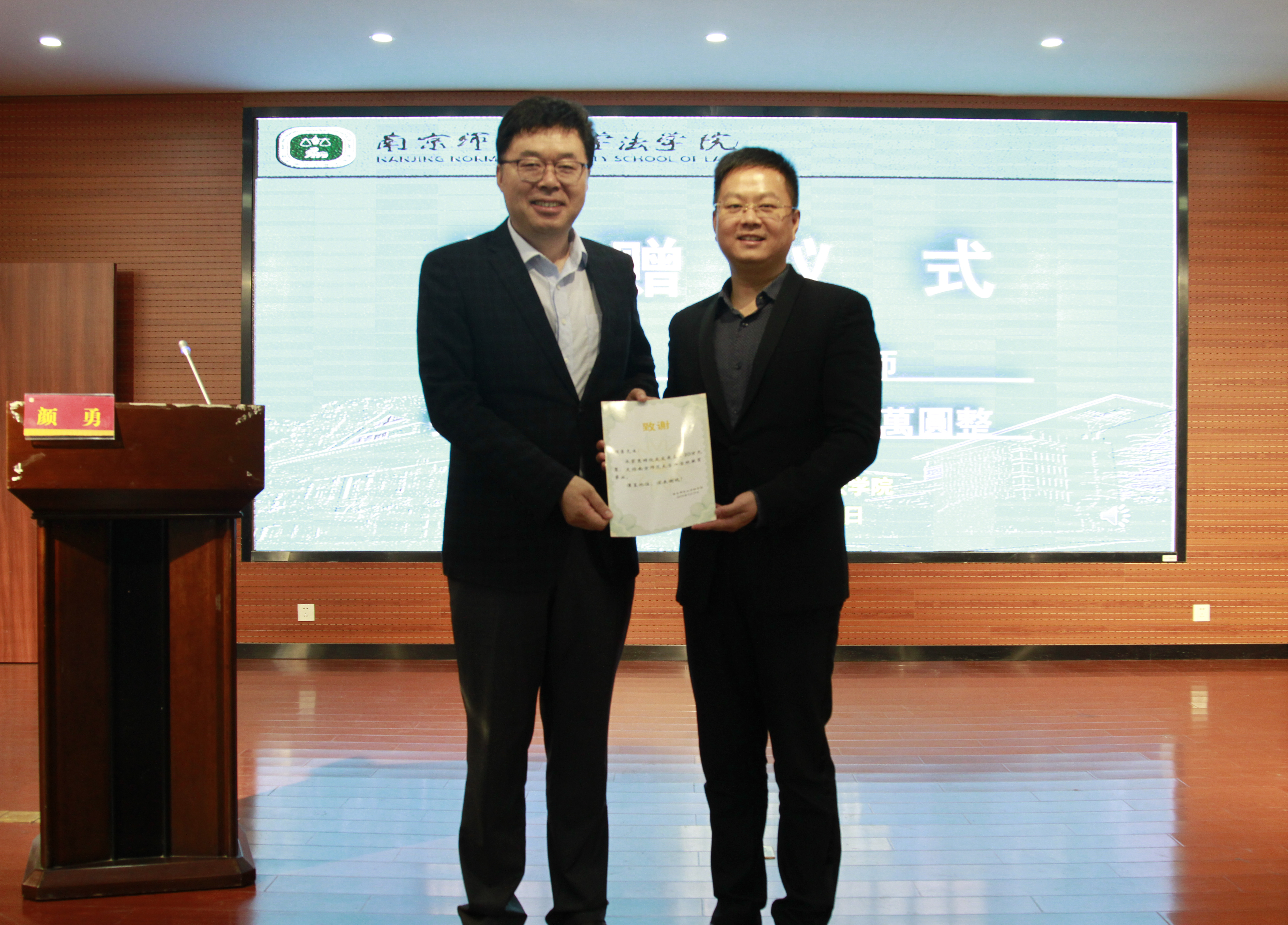 讲座正式开始之前,贲国栋老师代表学院聘任颜勇律师为博彩网址大全-中国博彩网址