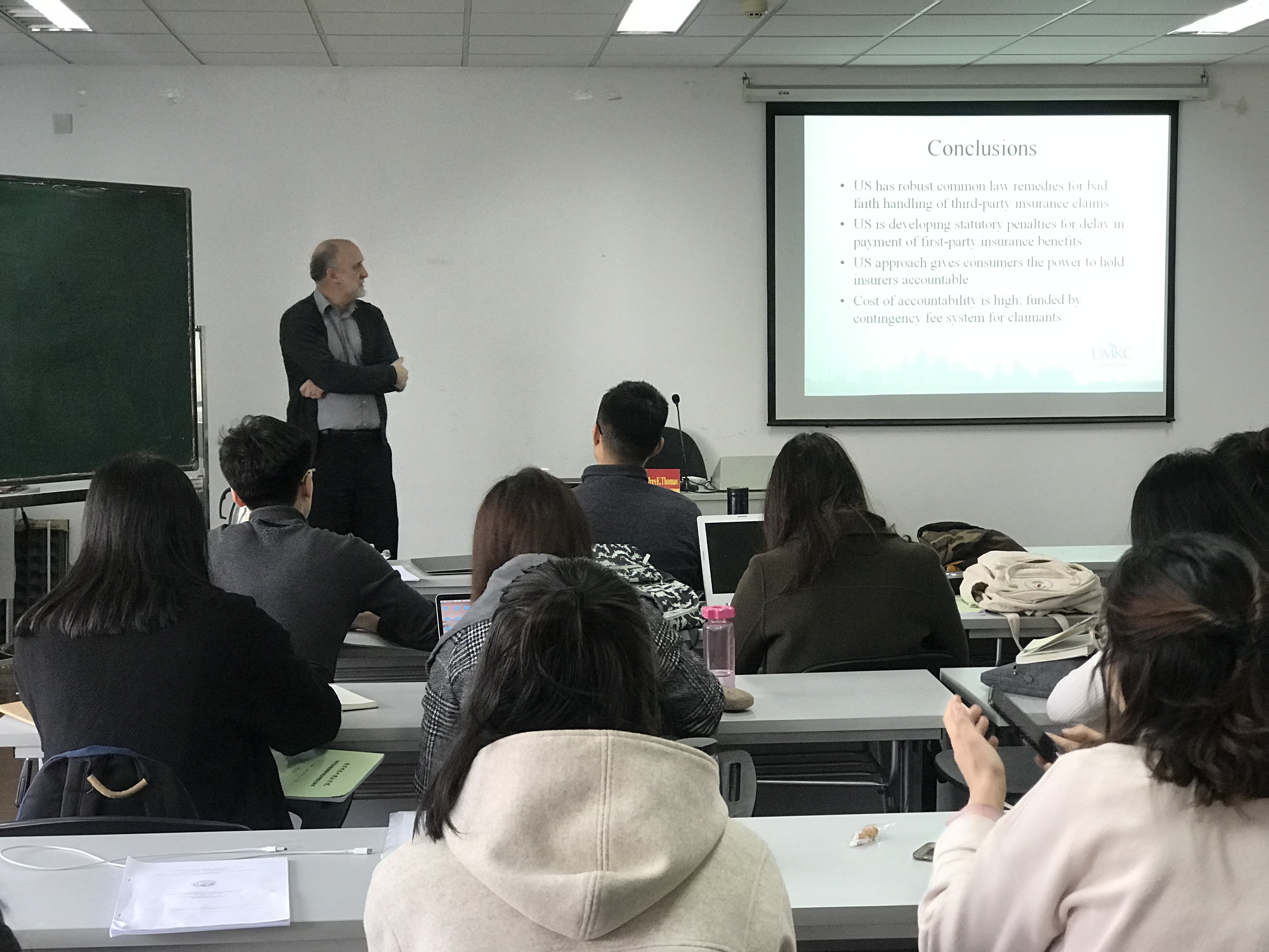 师生带来了“从比较法角度考察消费者保护的司法和行政措施”的讲座,并对密苏里大学堪萨斯分校的LLM项目进行了宣讲。讲座现场秩序井然,精彩纷呈,掌声不断。