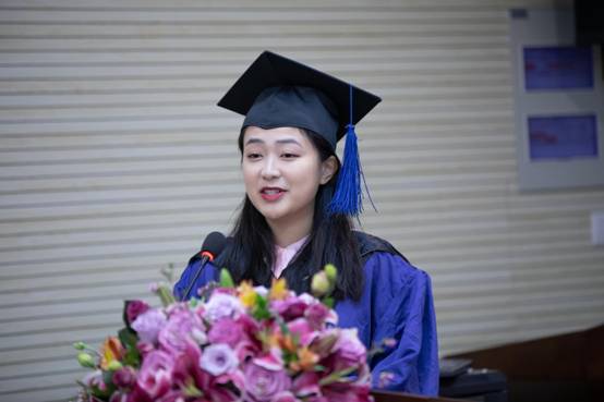 毕业生裴一霖同学代表全体2017级同学做了发言,总结了两年来的学习与生活中的收获,更多感谢南师大和马里兰大学对他们的辛勤培养。