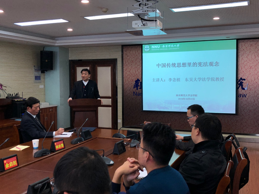 李念祖教授最后为大家作了题为《中国传统思想里的宪法观念》的讲座。李教授首先提到,在追求法治的过程中,宪法是非常重要的一环。如果宪法不够健全,那么法治便没有根基。宪法作为西方舶来品,在中国传统文化中缺乏根基,因此这样的文化隔阂使得国人对宪法的理解有一定的困难。因此澄清何为“宪法”便十分重要。
