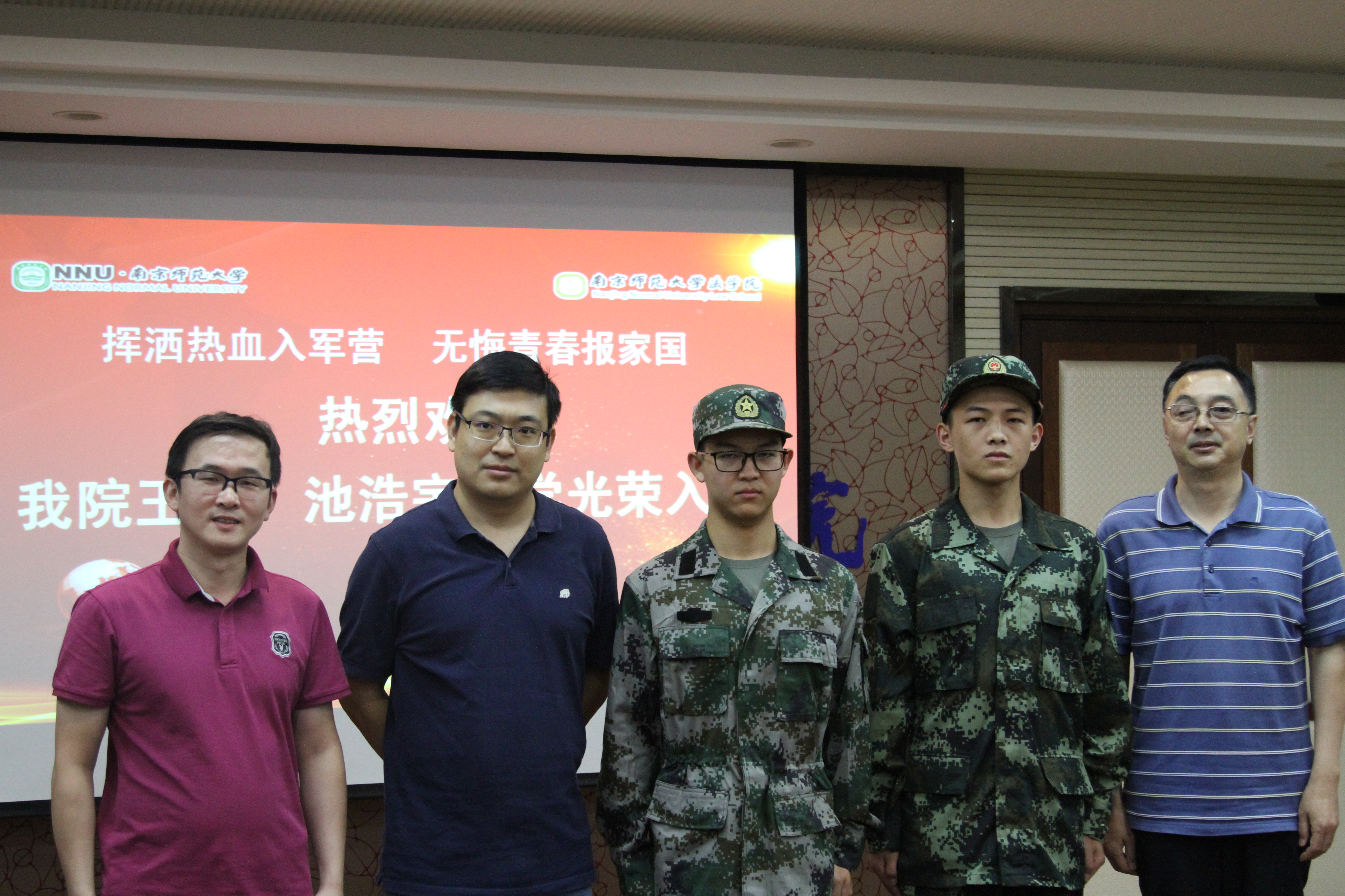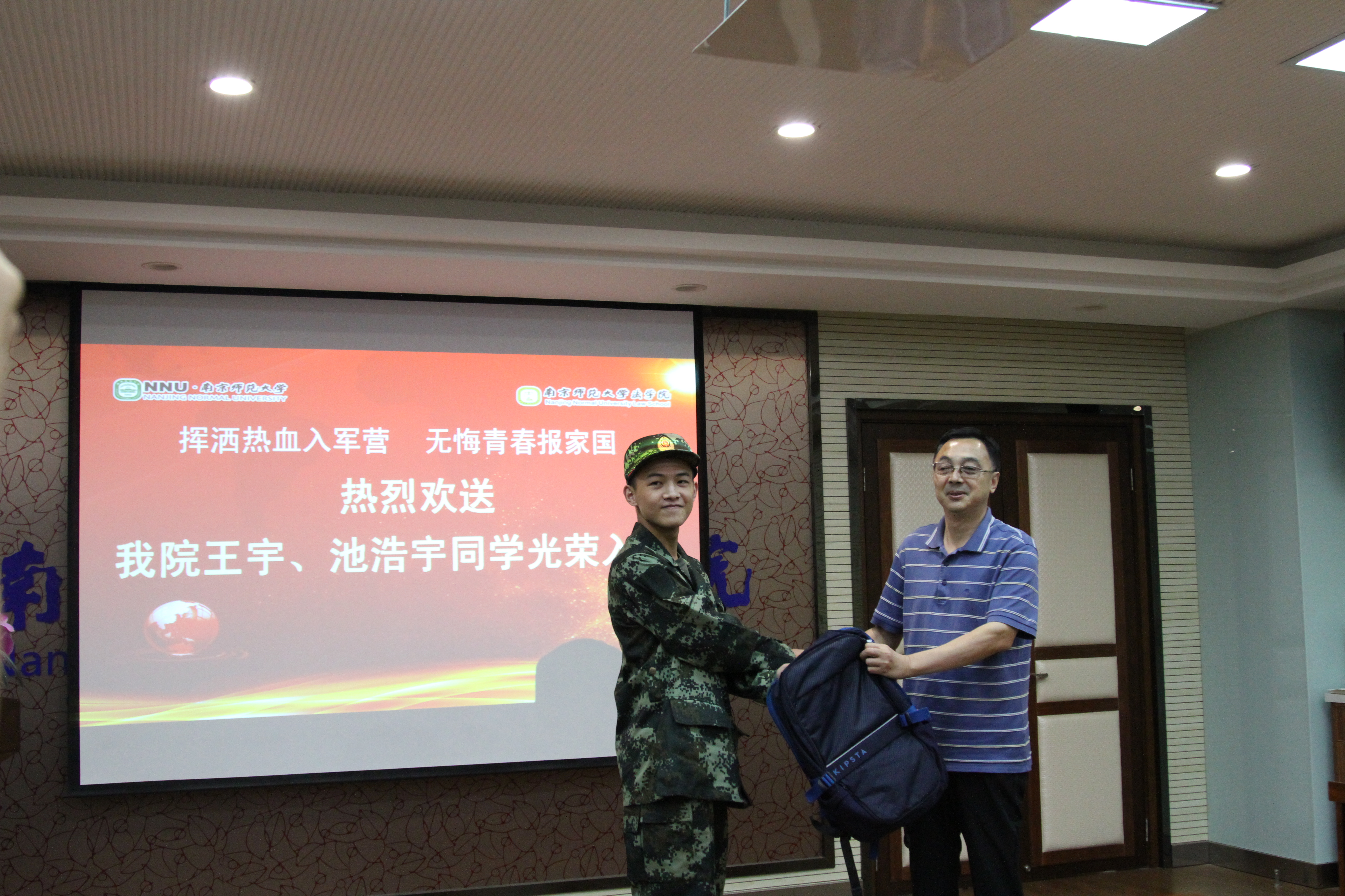 党委书记眭鸿明教授、党委副书记朱宁与团委书记朱志义出席本次活动,为两位入伍学生进行送别谈话并赠送慰问礼品。