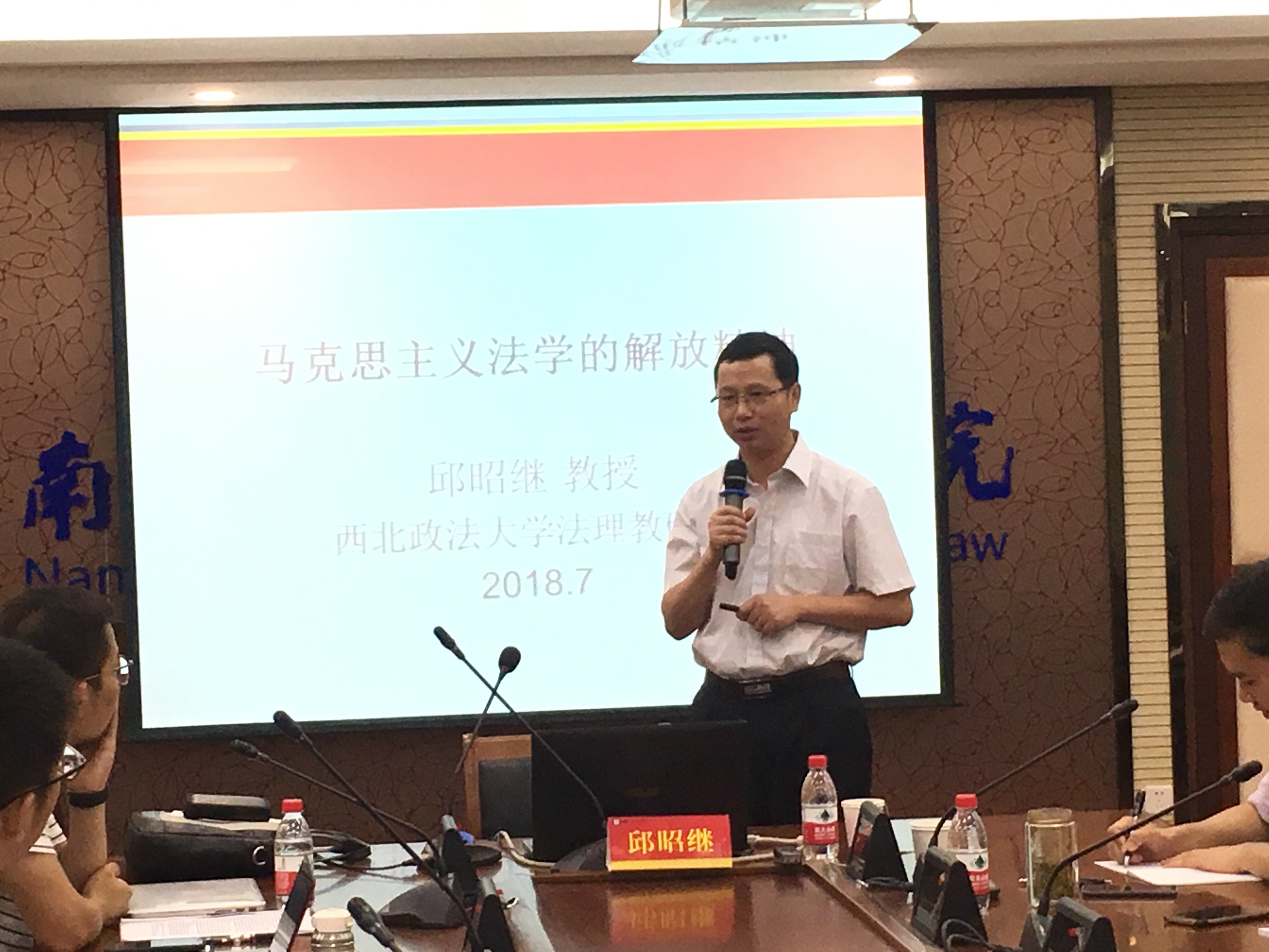 讲座初始,邱昭继教授借引习近平总书记在纪念马克思诞辰200周年大会上的讲话:“马克思的一生,是胸怀崇高理想、为人类解放不懈奋斗的一生。”“马克思主义是人民的理论,第一次创立了人民实现自身解放的思想体系。马克思主义博大精深,归根到底就是一句话,为人类求解放。”邱教授指出将法律与“解放”联系在一起是一个具有重要意义的研究维度。