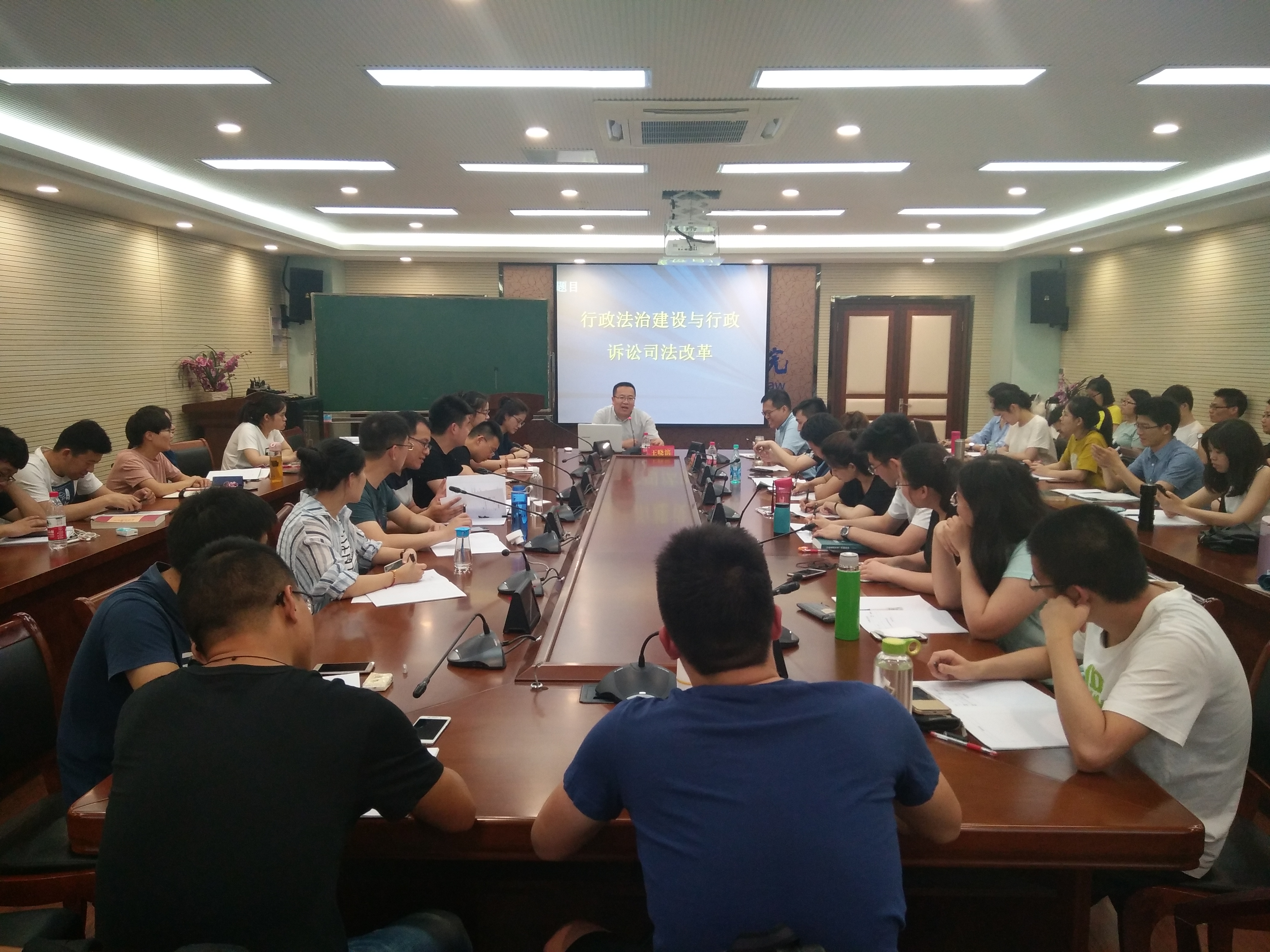 此次讲座的主题是《行政法治建设与行政诉讼司法改革》,王法官高屋建瓴地从四个方面为我们展现了正在展开的行政法治建设。在第一部分,王法官结合十八届三中、四中全会的会议决议,从立案受理、权力监督、司法体制、审判方式改革、行政审判司法环境保障等多方面介绍了党中央推进行政法治的着力点。并且从历史的纬度,细数了近20年来党和国家推进行政法治的重大进程,进一步解析了党的十九大绘制的法治蓝图。在第二部分,王法官从司法改革的层面,向我们详细介绍了当前法官员额制改革、司法责任制改革等取得的成果和经验。第三部分,王法官主要是结合2014年的《行政诉讼法》修改以及2017年、2018年《行政诉讼法解释》的出台,介绍了《行政诉讼法》的创新性规定,同时提出了当前改革创新中存在的一些问题。在第四部分,王法官向大家展示了人民法院司法公开的一些新举措,包括庭审网络直播、执行信息公开等。
