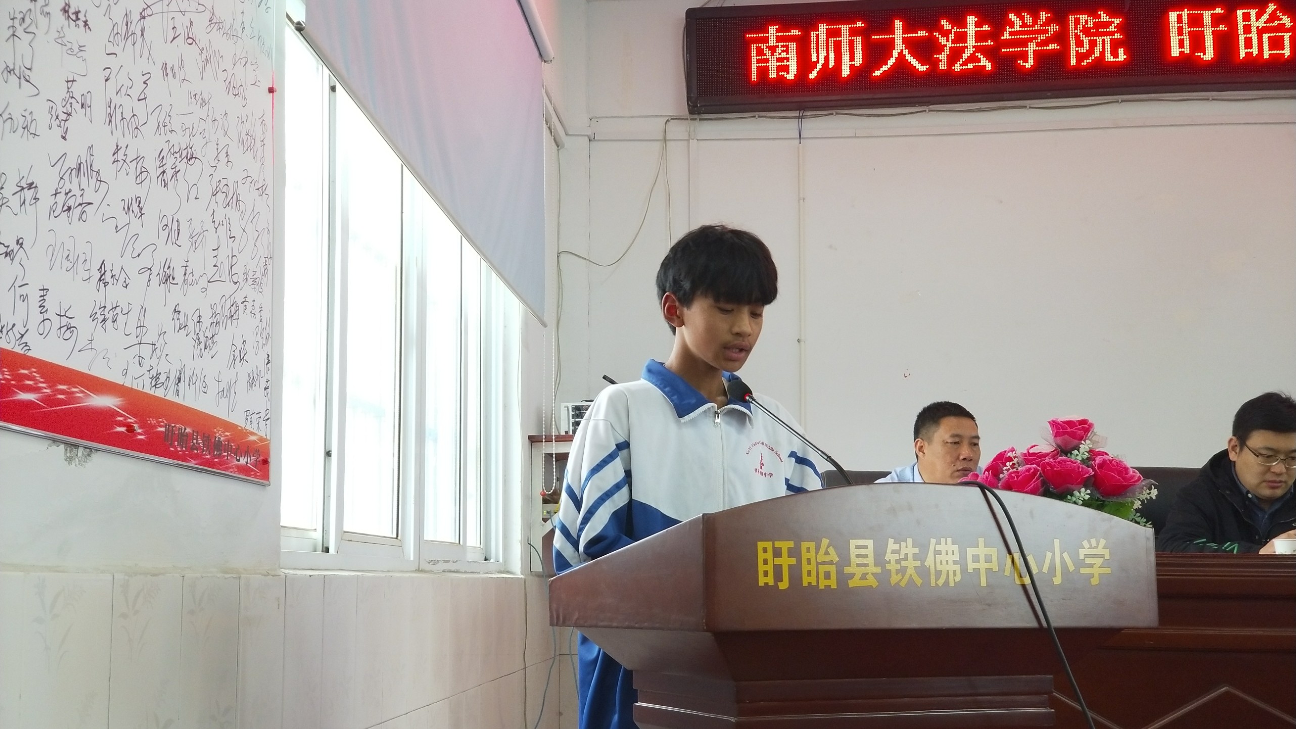 此次活动一共分为两个部分,第一部分,前往盱眙县铁佛镇小学开展贫困学生帮扶和普法活动,内容包括爱心助学共建和宪法内容讲座。此部分共分为三个环节,第一环节首先由铁佛镇乔桂军镇长发表讲话,乔镇长对博彩网址大全