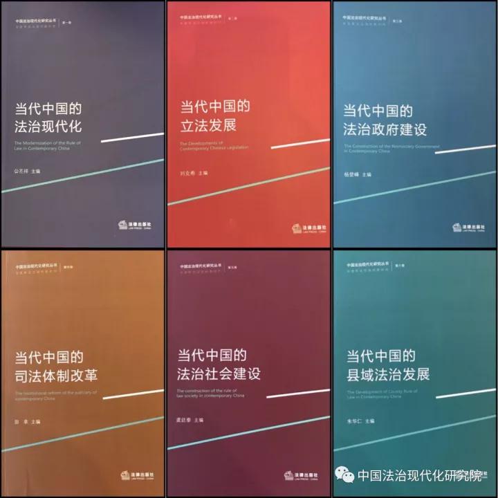 “全面依法治国新时代”智库丛书六卷本分别为《当代中国的法治现代化》《当代中国的立法发展》《当代中国的法治政府建设》《当代中国的司法体制改革》《当代中国的法治社会建设》和《当代中国的县域法治发展》,分别由中国法治现代化研究院法治发展战略研究所、立法发展研究所、法治政府研究所、司法改革与现代化研究所、法治社会研究所和区域法治发展研究所组织编写完成。
