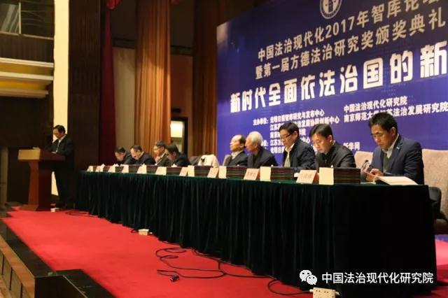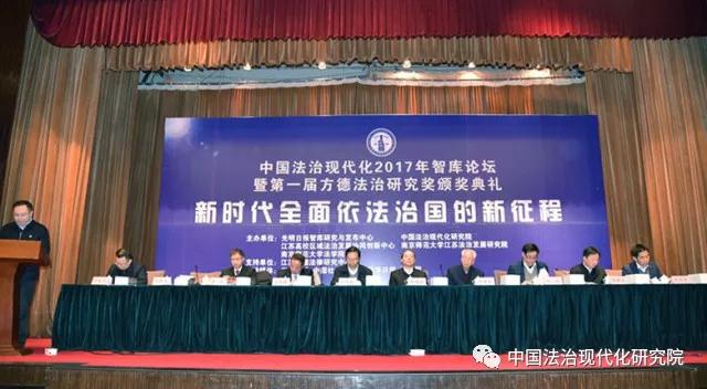 在举国上下深入学习贯彻党的十九大精神热潮中,2017年12月9日,中国法治现代化2017年智库论坛暨第一届方德法治研究奖颁奖典礼在南京隆重召开。论坛主题为“新时代全面依法治国的新征程”,由光明日报智库研究与发布中心、中国法治现代化研究院、江苏高校区域法治发展协同创新中心、南京师范大学江苏法治发展研究院、博彩网址大全-中国博彩网址