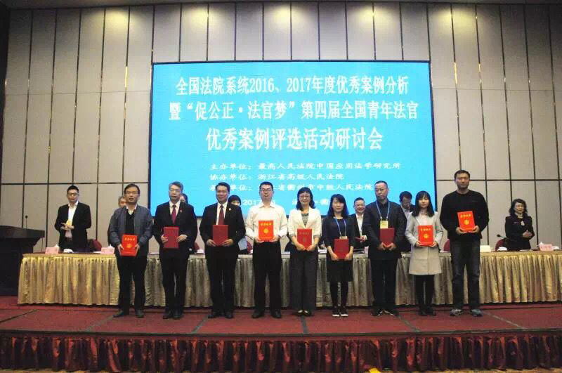2017年11月9日,为认真学习贯彻党的十九大精神,繁荣应用法学研究,经最高人民法院批准,由中国应用法学研究所主办、浙江省高级人民法院协办、浙江省衢州市中级人民法院承办的全国法院系统2016、2017年度优秀案例分析暨“促公正·法官梦”第四届全国青年法官优秀案例评选活动研讨会在衢州召开。来自全国各省、自治区、直辖市高级人民法院,解放军军事法院,新疆维吾尔自治区高级人民法院生产建设兵团分院,部分中基层人民法院的代表以及中国人民大学、清华大学、南京师范大学等高校的专家学者共150人与会。会议对全国法院系统2016、2017年度优秀案例分析评选活动优秀案例作者和先进单位进行了表彰。