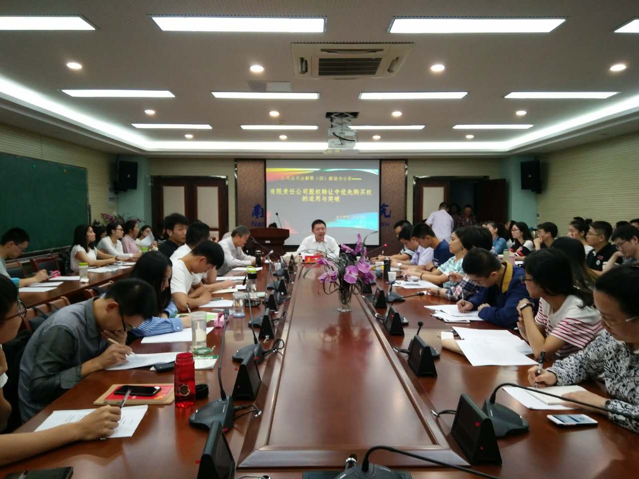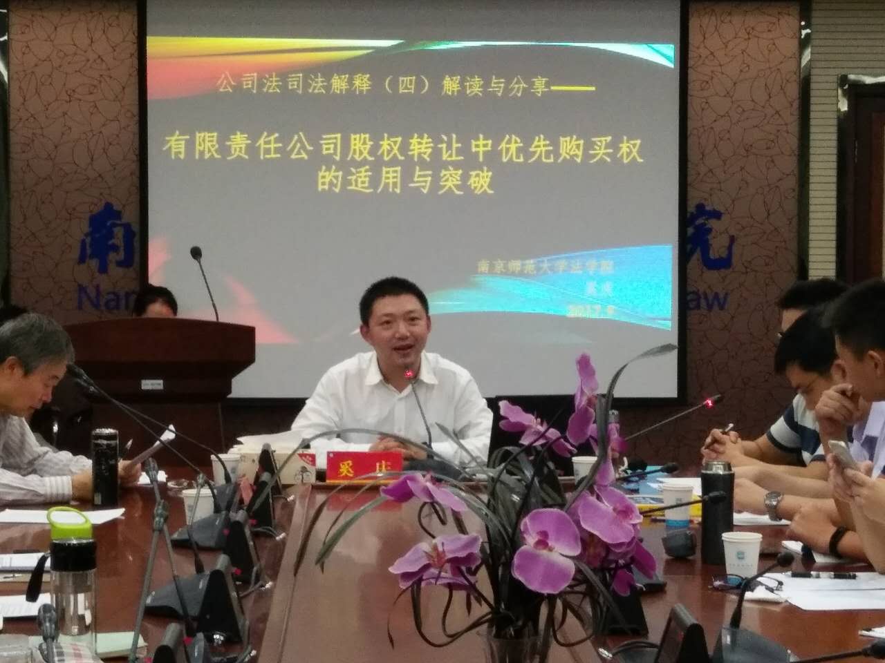 倪斐副教授主持。奚庆老师带来的学术研讨主题是:“公司法司法解释(四)解读与分享——有限责任公司股权转让中优先购买权的适用与突破”。
