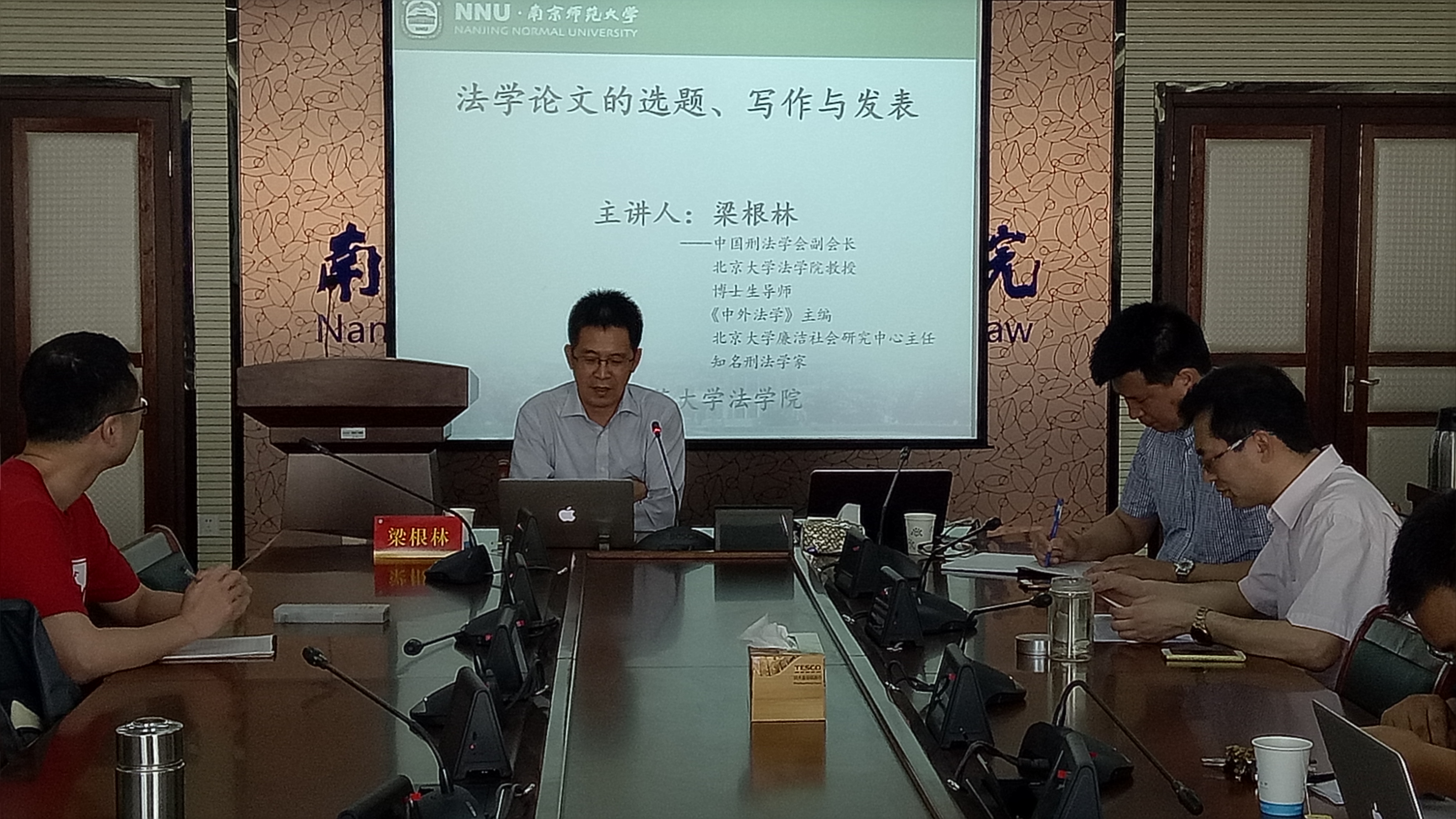 博士生导师、《中外法学》主编、北京大学廉洁社会研究中心主任、著名刑法学家梁根林教授在南京师范大学仙林校区行敏楼434会议室进行“法学论文的选题、写作与发表”的精彩报告,姜涛教授主持本次论坛,博彩网址大全
