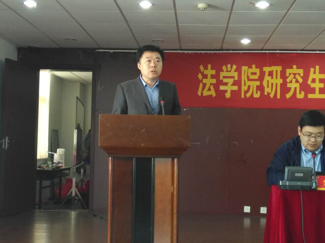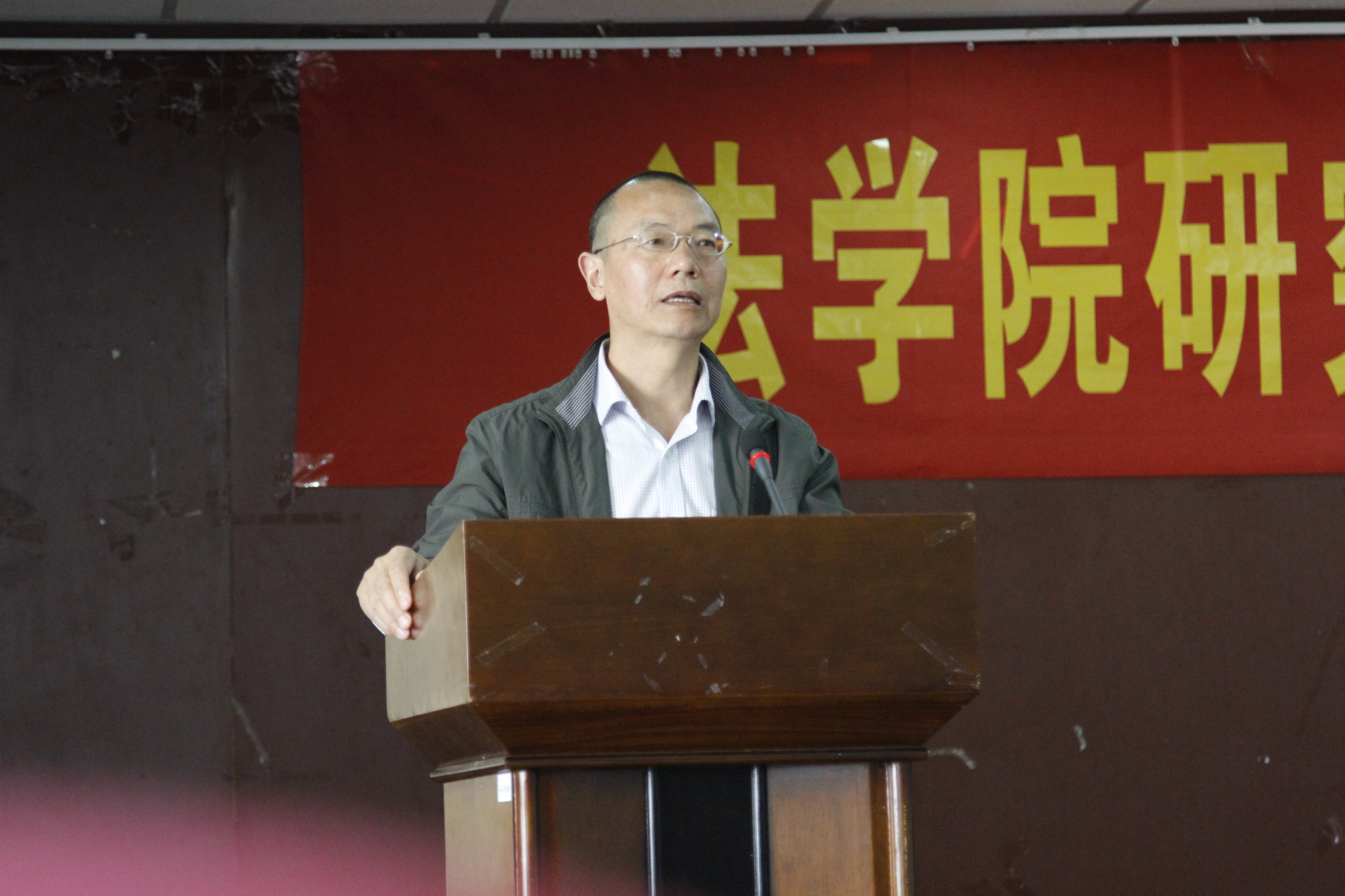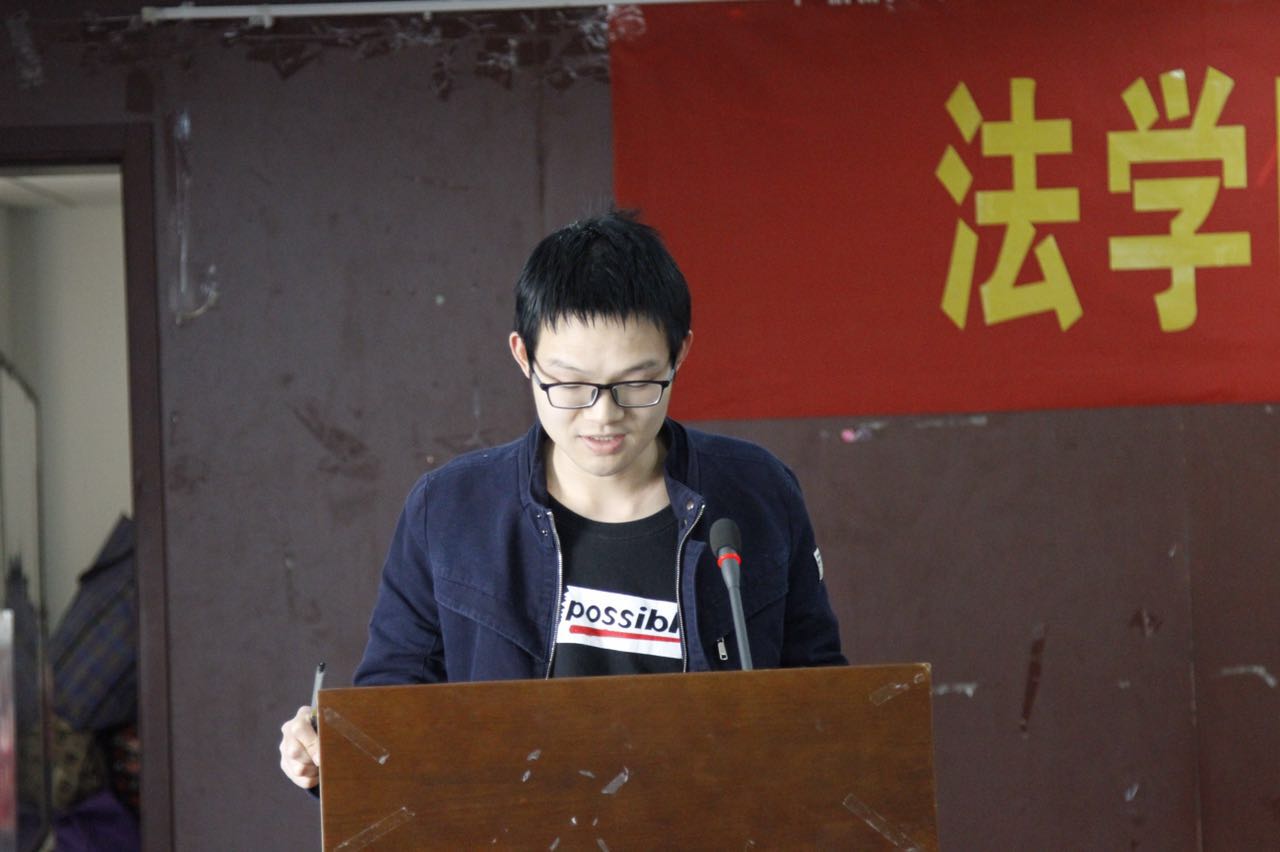 第三项内容,硕士生代表2015级民商法专业吴磊同学对于学术能力培养提出个人观点,即首先是要培养法律思维能力,法律语言表达能力,其次是实践分析能力,第三是培养我们的写作能力,学会运用法学方法,增加自己阅读量。最后他提出了自己的心得,多参加讲座,多听不同老师的课,多参加科研项目,在实习中多参加科研项目。