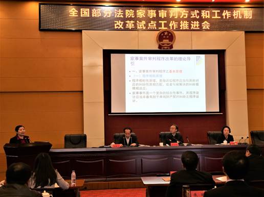 2017年2月17-18日,最高人民法院在福建泉州召开“全国部分法院家事审判方式和工作机制改革试点工作推进会”,出席会议人员除了最高人民法院审判委员会专职委员杜万华、福建省高级人民法院党组书记、院长马新岚两位领导外,主要由以下单位的人员构成:最高人民法院、专家学者(北京师范大学和南京师范大学各一位教授)、部分地方法院。