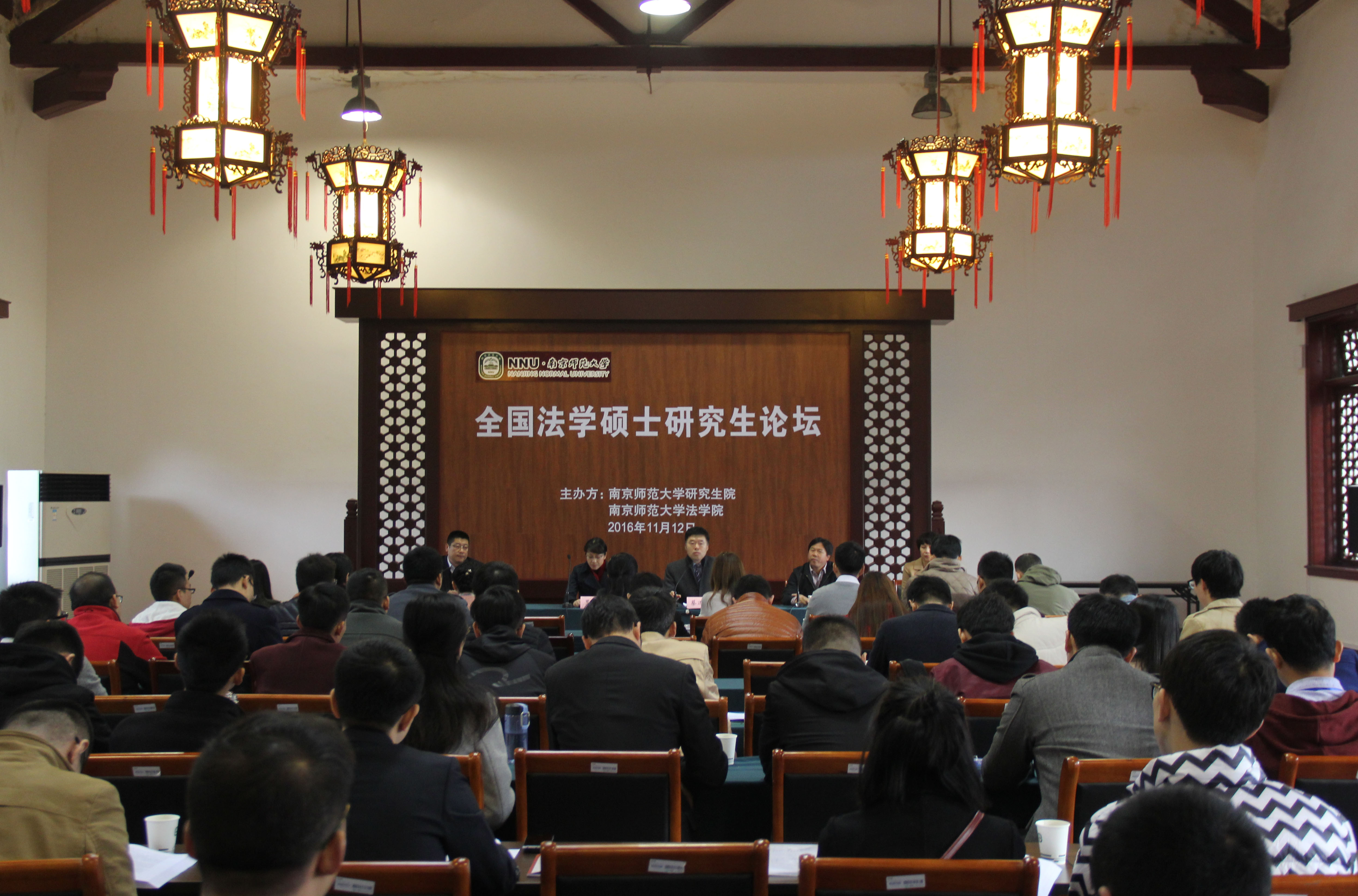联合主办的首届“全国法学硕士研究生论坛”在南京师范大学随园校区召开。来自北京大学、中国人民大学等二十余所全国知名高校的法学硕士研究生与南京师范大学的法学硕士代表们共赴此次法学学术交流盛宴。此次论坛共收到投稿论文两百余篇,经过专家学者的前期筛选和评议,最终有五十位法学硕士参与此次论坛。