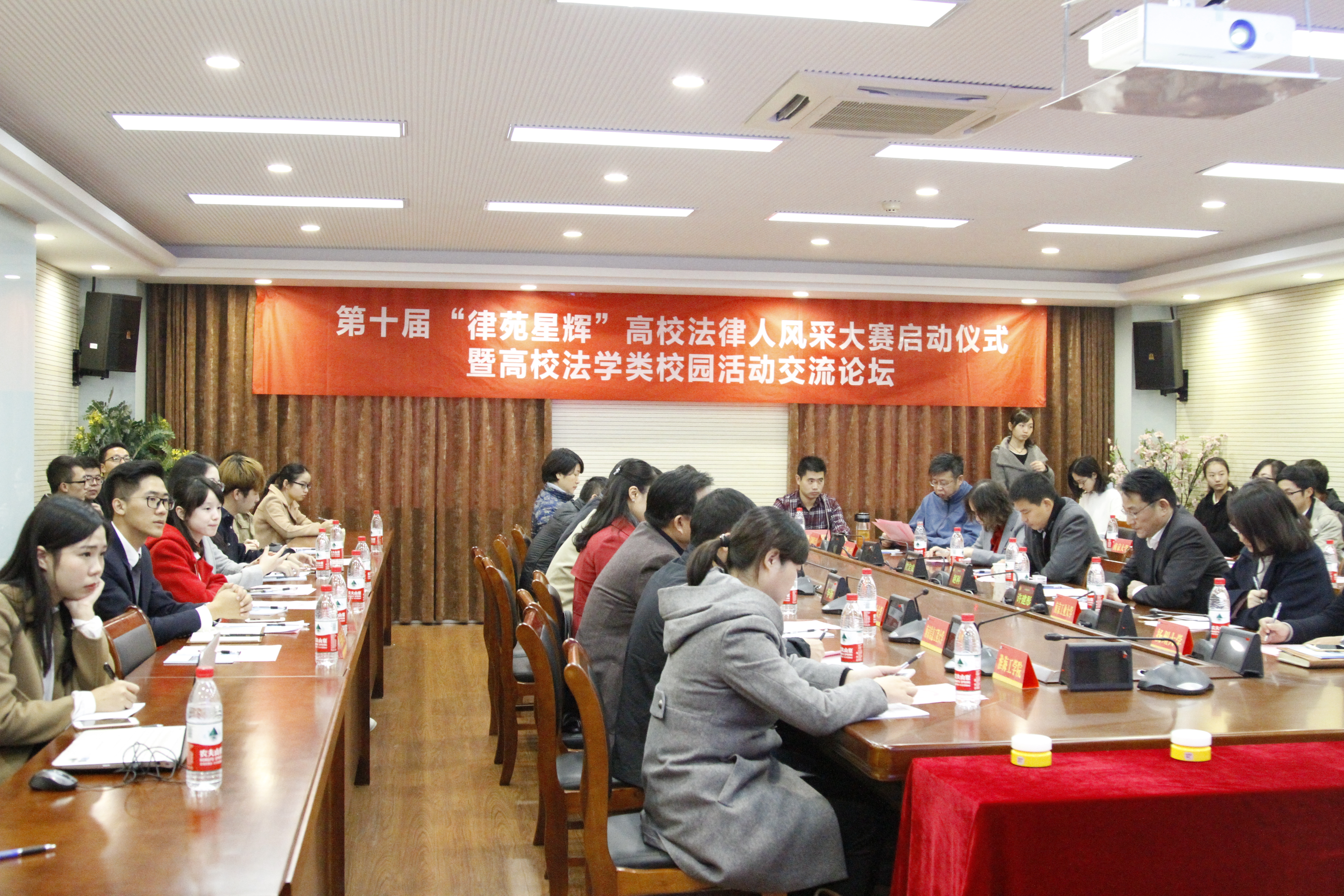 11月12日上午9点30分,由江苏省司法厅、江苏省法学会和南京师范大学联合主办的第十届“律苑星辉”江苏高校法律人风采大赛启动仪式暨高校法学类校园活动交流论坛在我校仙林校区行敏楼434隆重举行。