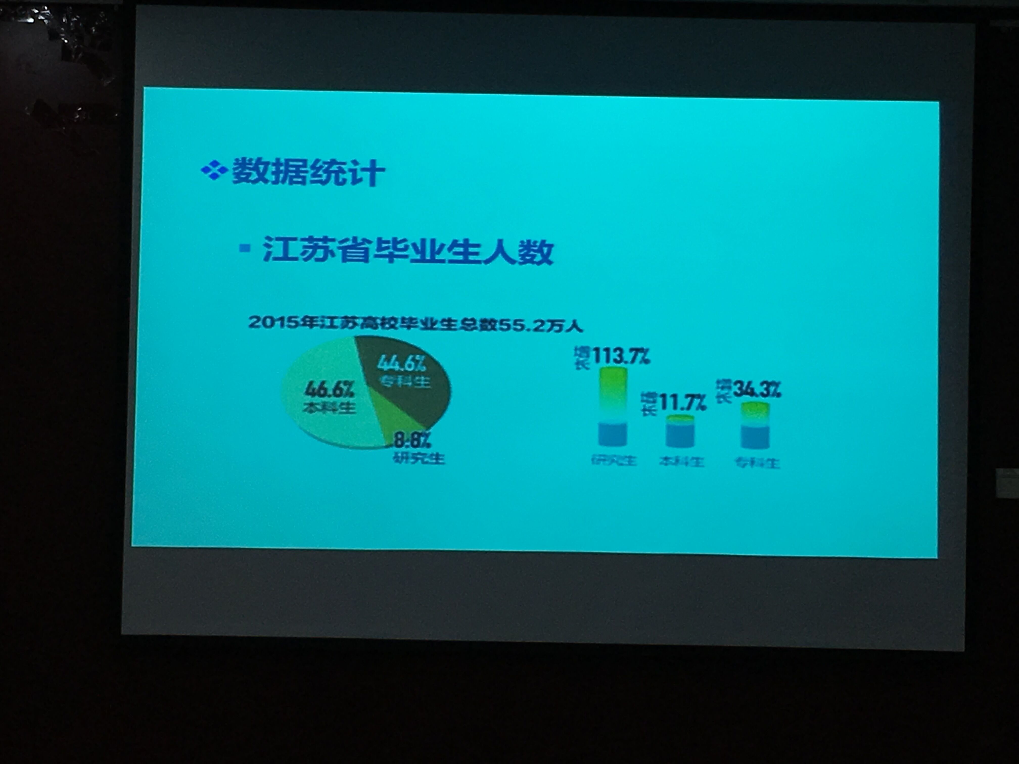 的就业升学状况形象地展示出来。总体来看,全国高校的毕业生人数呈现一直攀升的态势,而江苏省高校毕业生中研究生的增长比例最大。关于毕业生的就业质量,本科生的就业率围绕全省平均水平上下波动,属于正常范围,而研究生的就业率则不容乐观,低于全省的平均水平。就本科生就业率显高于研究生的状况,朱书记认为,是因为考虑了升学和出国的评断指标。在我们学校,法学专业的就业率较其他专业则明显偏低,朱书记表示不必过于堪忧,认为专业的特殊性决定了通过法律职业资格考试以后并不急于找工作,一旦就业则质量都相对较高。