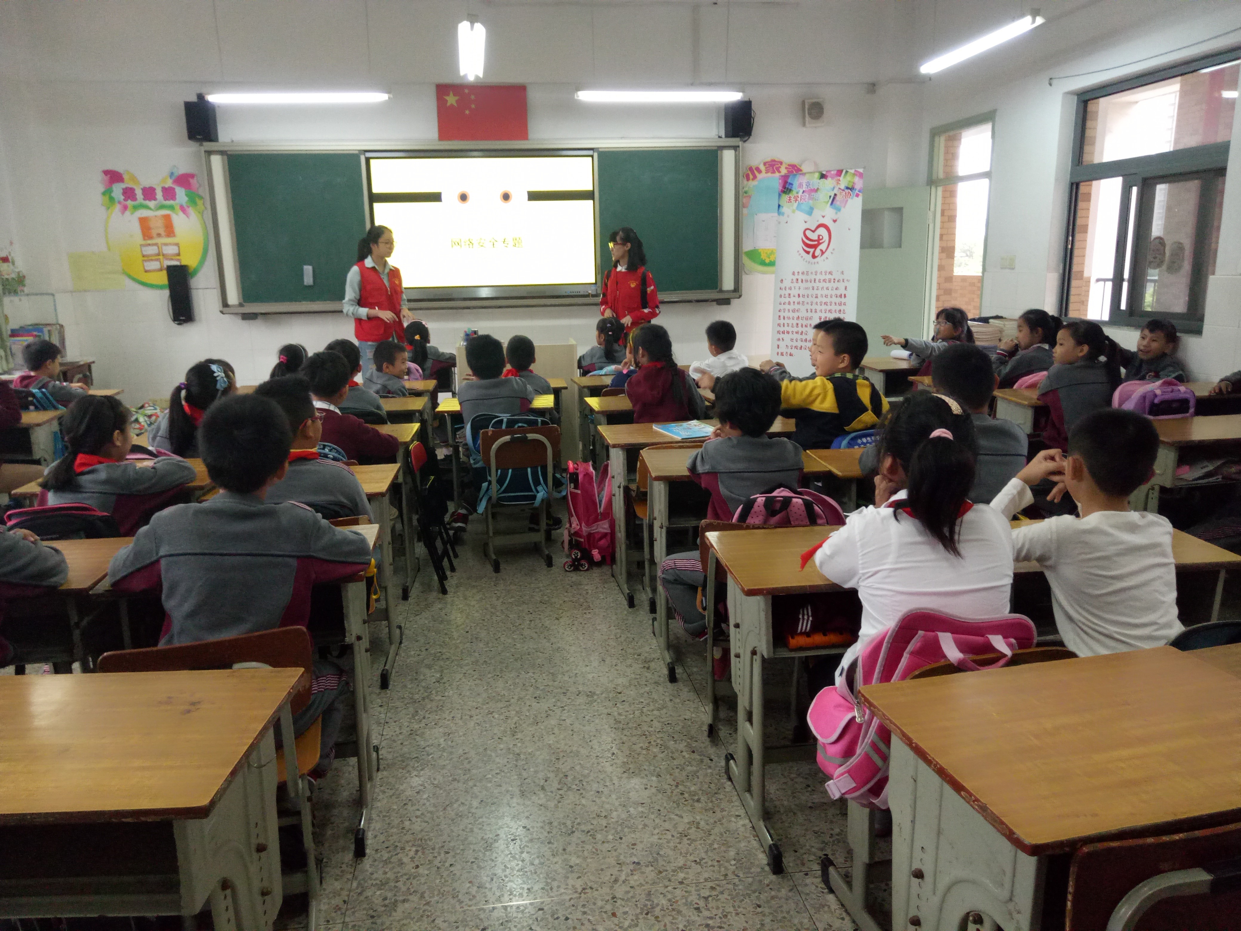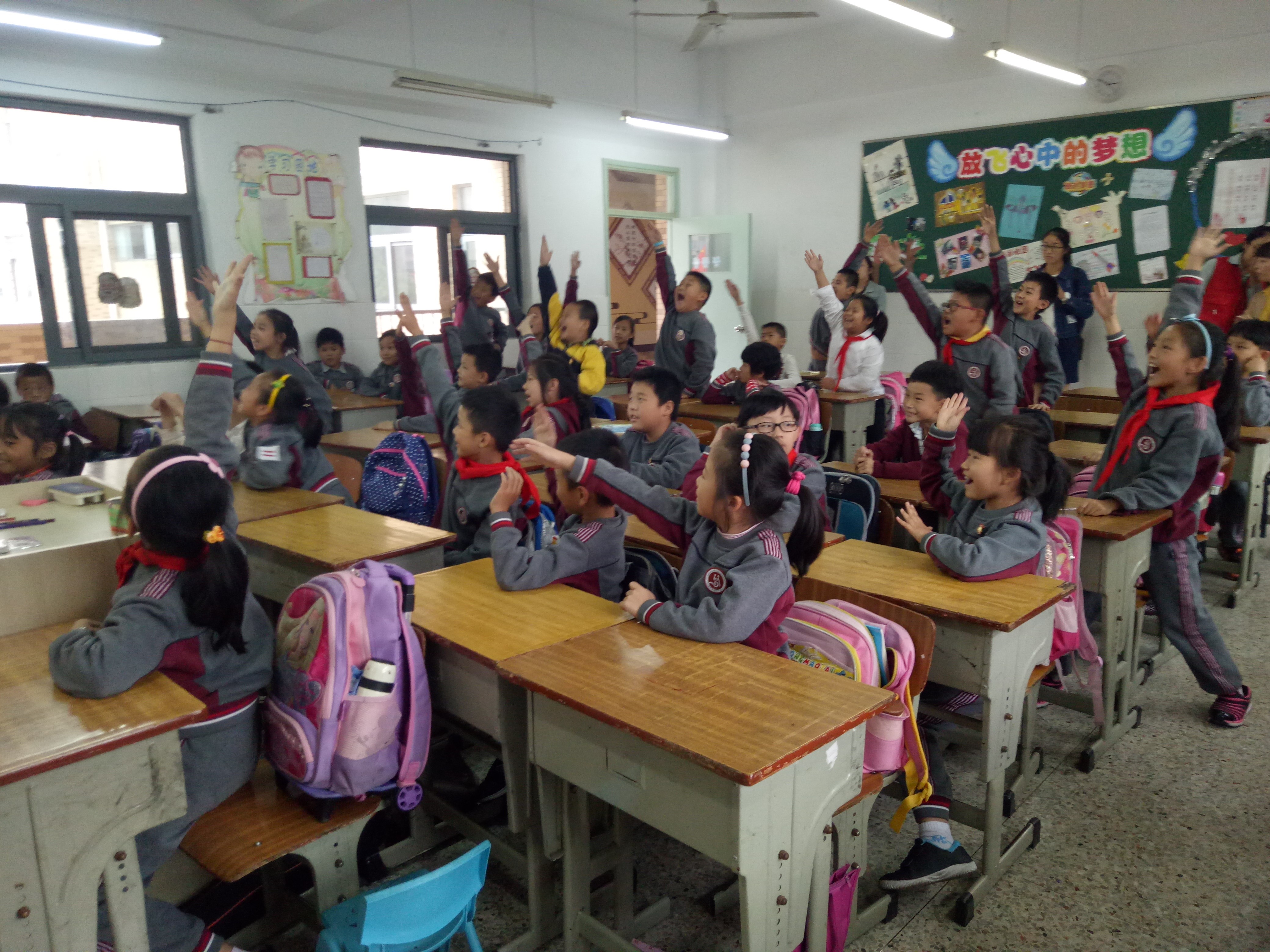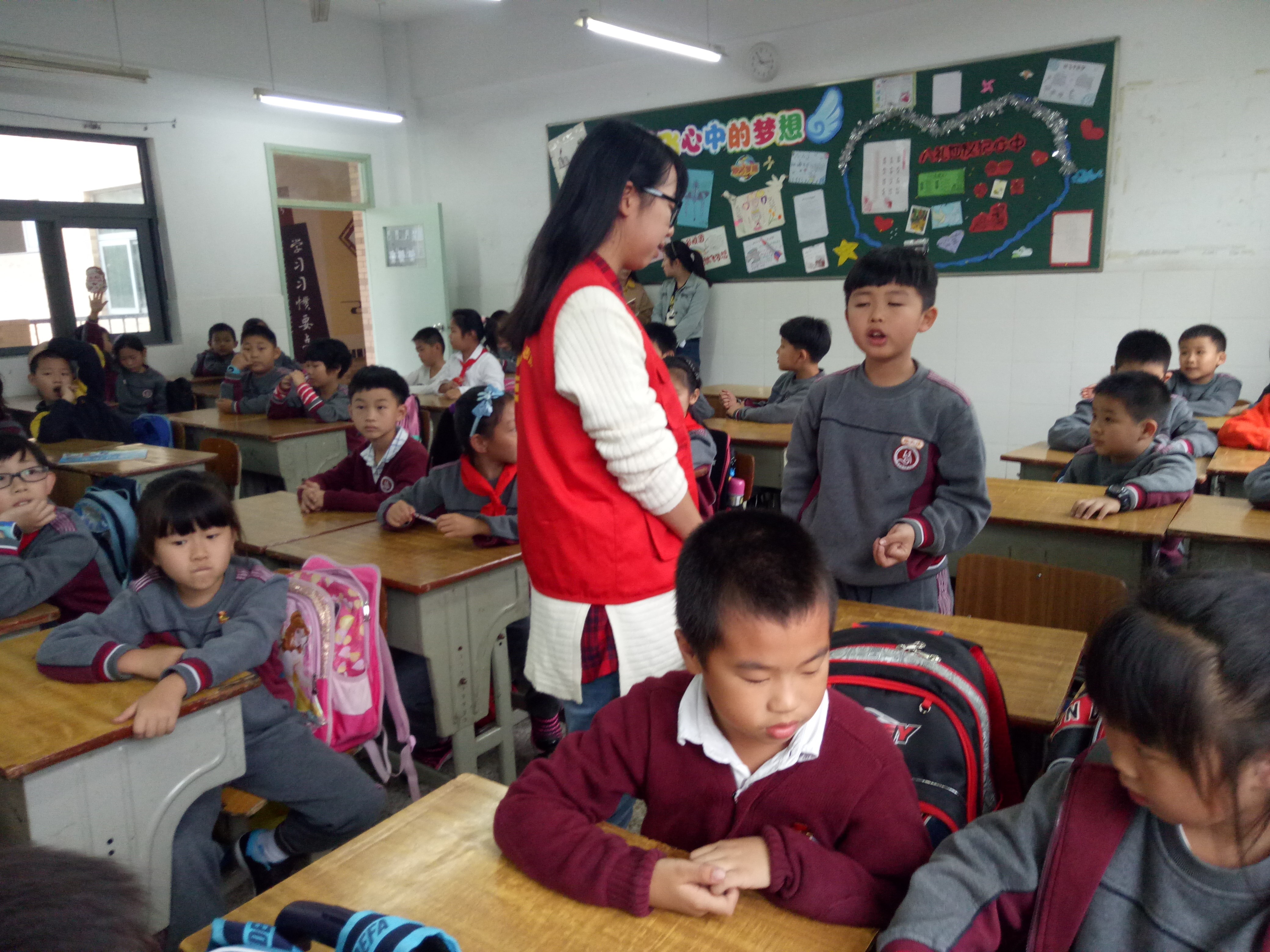 一走进学校志愿者们就感觉到了浓浓的书香气,立贤小学环境整洁,有先进的教学设施。在班会开始之前同学们就对这次班会表现出了强烈的好奇心。