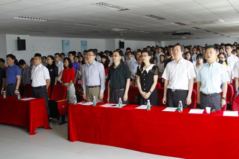 13位老师、南京市栖霞区团委书记付建龙校友代表及本院近300名研究生及本科毕业生共同参加了本次典礼。典礼在高昂庄严的国歌声中拉开序幕。