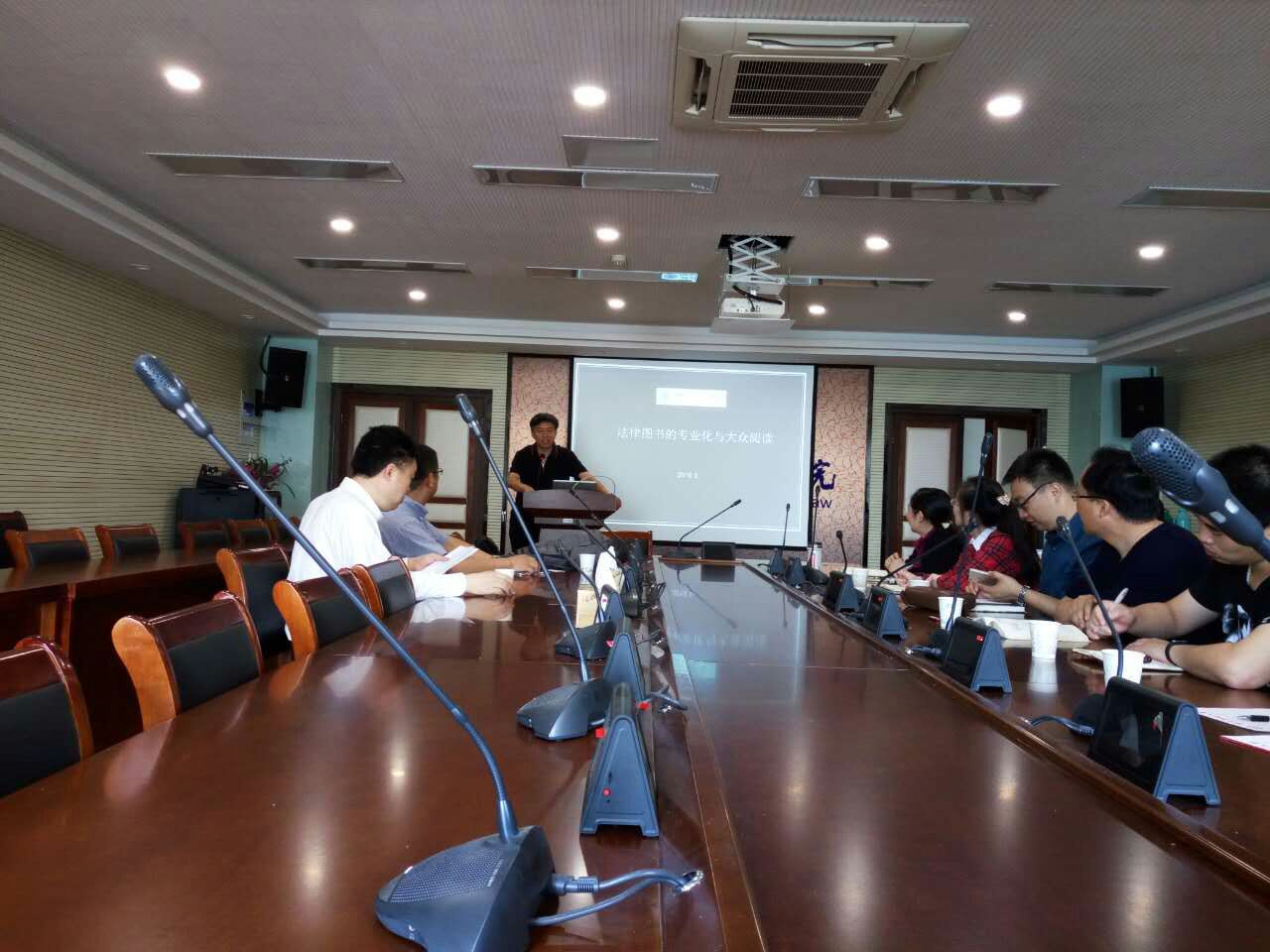 首先,蒋老师介绍了法学图书的出版概况。2015年全年出版法学图书约5000种,法学学术著作、法律实务用书,法律知识读本占前三名。其中法学学术著作占36%,较上一年增加18%。其次,法律图书进行了行业分类,分为法学学术著作,法律教材,法律考试等方面。紧接着,蒋老师介绍了学术出版的两难话题,其一是选题的确定,出版社的标准是选题论证会,学术界的标准是专家论证,业界口碑与评价是专业的局限性,三种标准冲突时需要权衡利弊。其二是学术出版补助,这对专业出版社和图书市场都存在较大影响。对学术出版社而言,其所面临的主要困境时学术出版品牌树立的长期性与出版社业绩考核的短期性的矛盾。出版社自身选题评价标准与学术研究机构评价标准与体系的隔阂。综合学科出版社机构如何把握学科,多学科选题的学术标准评价的难题。