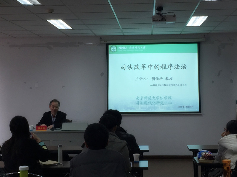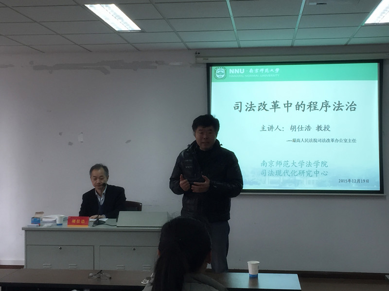 2015年12月19日下午2点30分,最高人民法院司法改革办公室主任胡仕浩教授在行敏楼410作了题为“司法改革中的程序法治”的讲座。本次讲座由蔡道通院长主持,博彩网址大全
