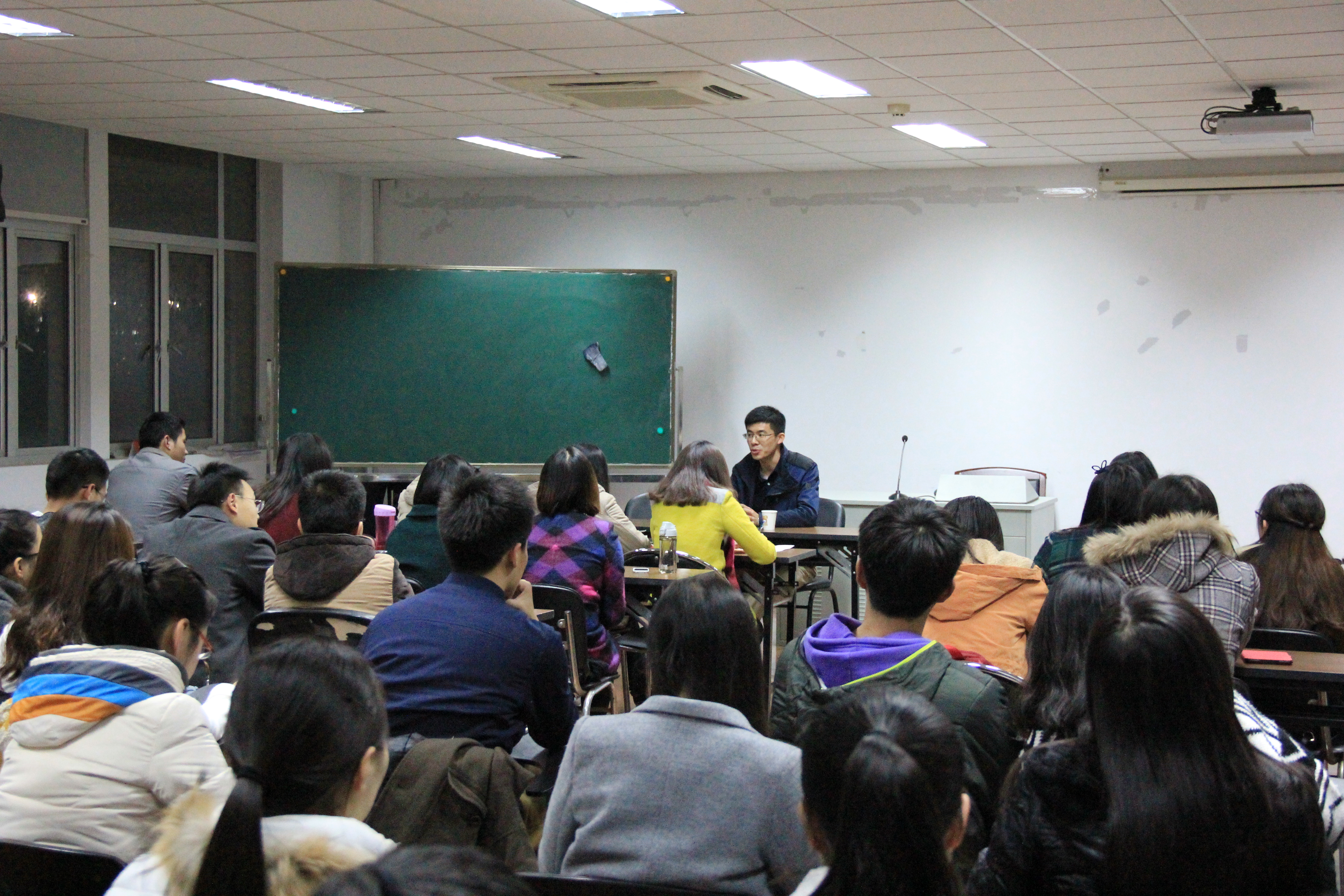 其次,张练学长简单的从学习、生活、职业跟大家交流了一下经验,他认为踏入职场后生活应该放在第一位,相处之道——防人之心不可无,南京具有较高的人文情怀,南京高融合度,更多的是安徽人、苏北人。学习方面,抓紧在学校的时光用功学习,感慨工作后通过了司法考试难度更大。建议女生最好不要从事高强度的公检法办案工作,女孩子最好从事文案或行政相关工作等。