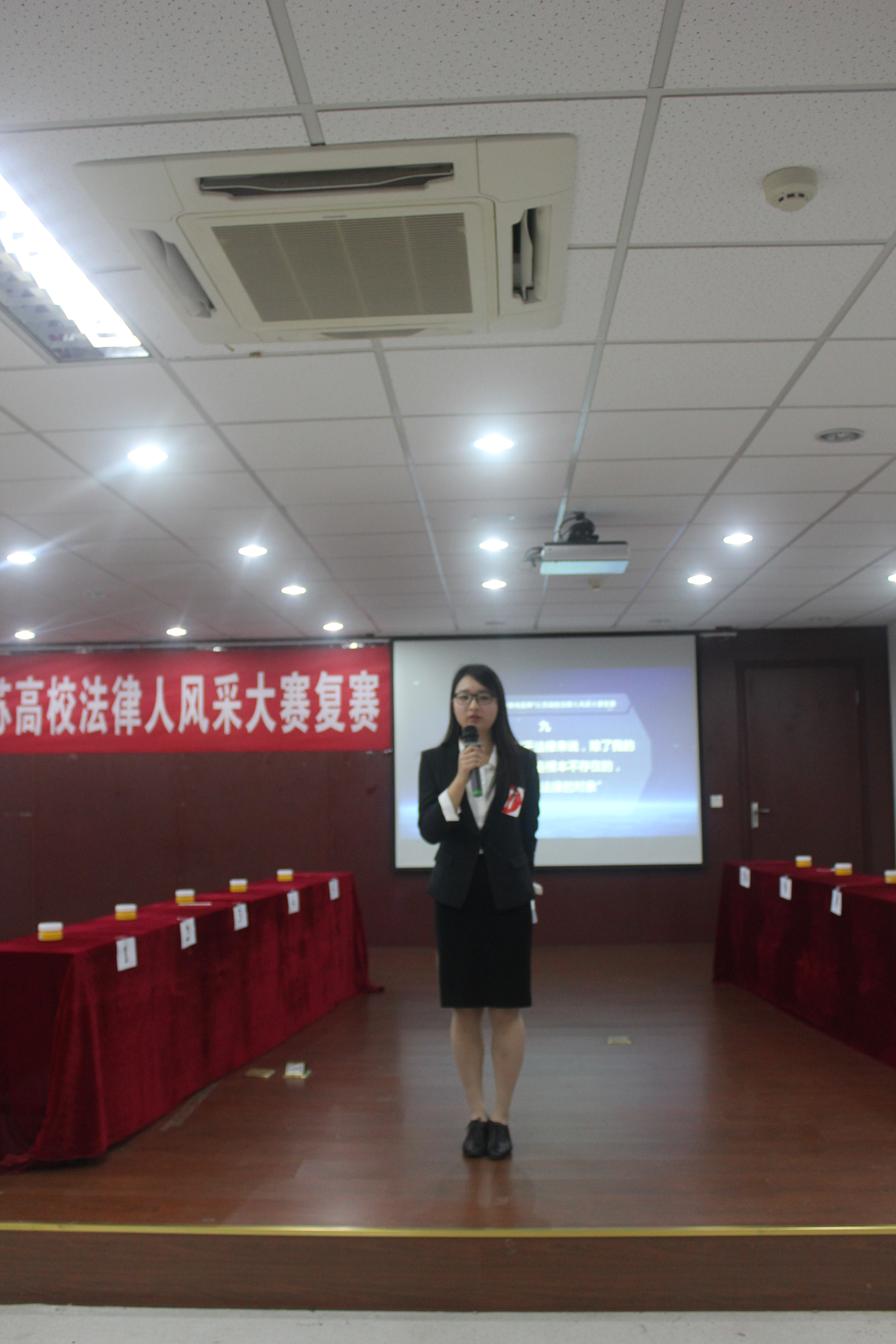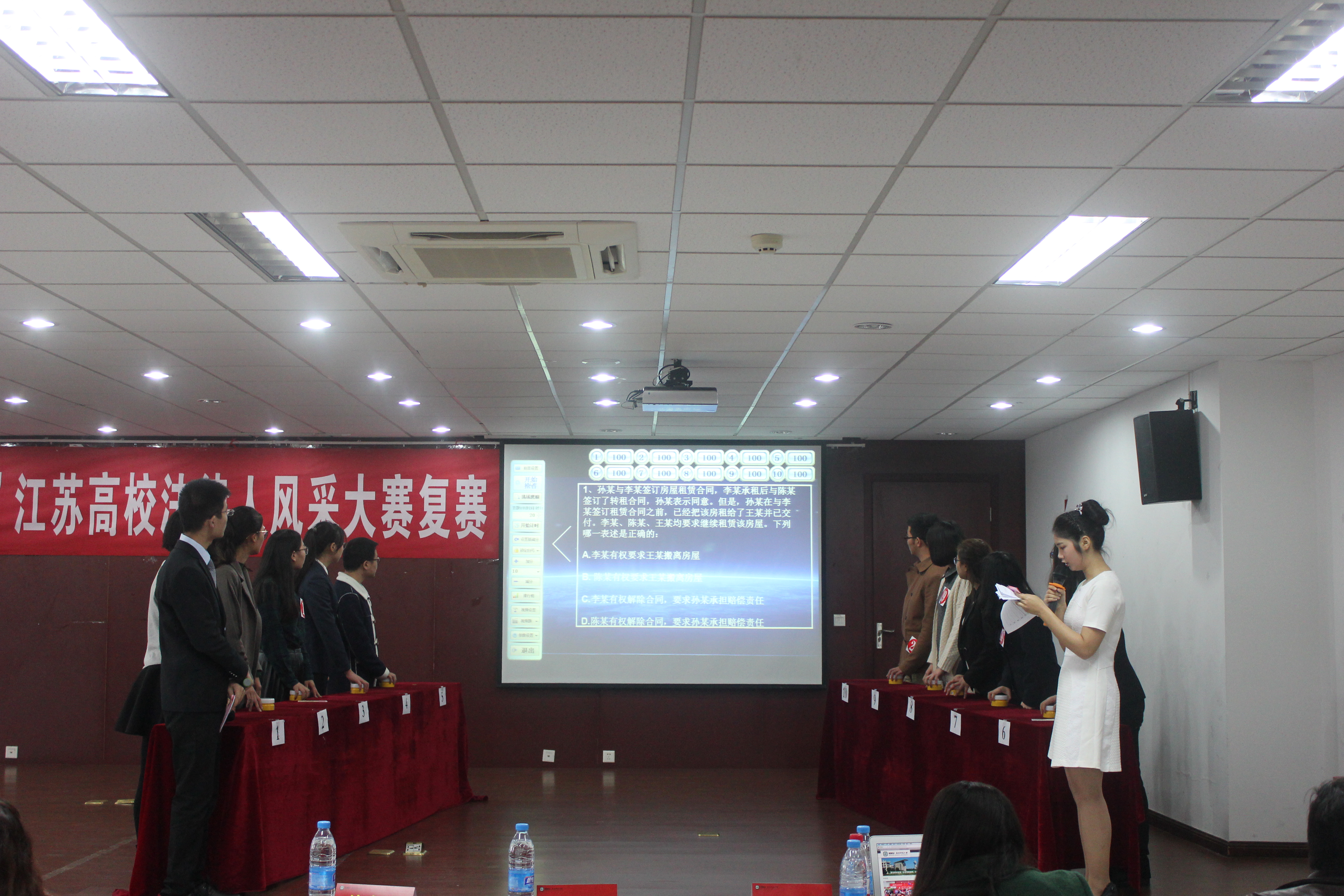 2015年11月21日下午1点30分,由江苏省教育厅、江苏省司法厅、江苏省法学会、南京师范大学主办的第九届“律苑星辉”江苏高校法律人风采大赛复赛在我校行敏楼338模拟法庭顺利举行,本届“律苑星辉”江苏高校法律人风采大赛复赛由我校博彩网址大全