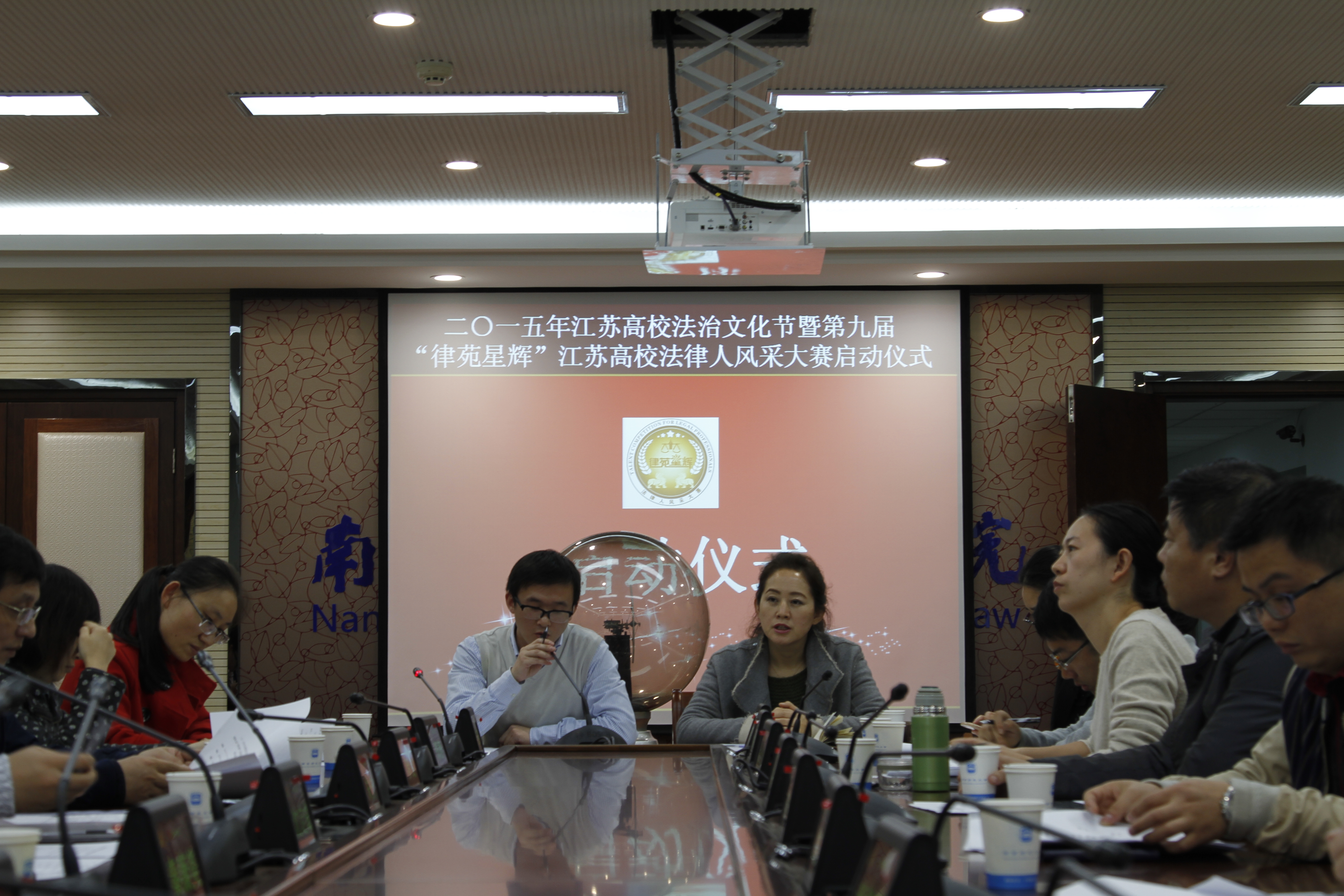 党委副书记朱宁主持,江苏省法学会和东南大学、南京理工等众多高校的负责人参加了本次高校法治文化节和法律人才风采大赛启动仪式研讨会。
