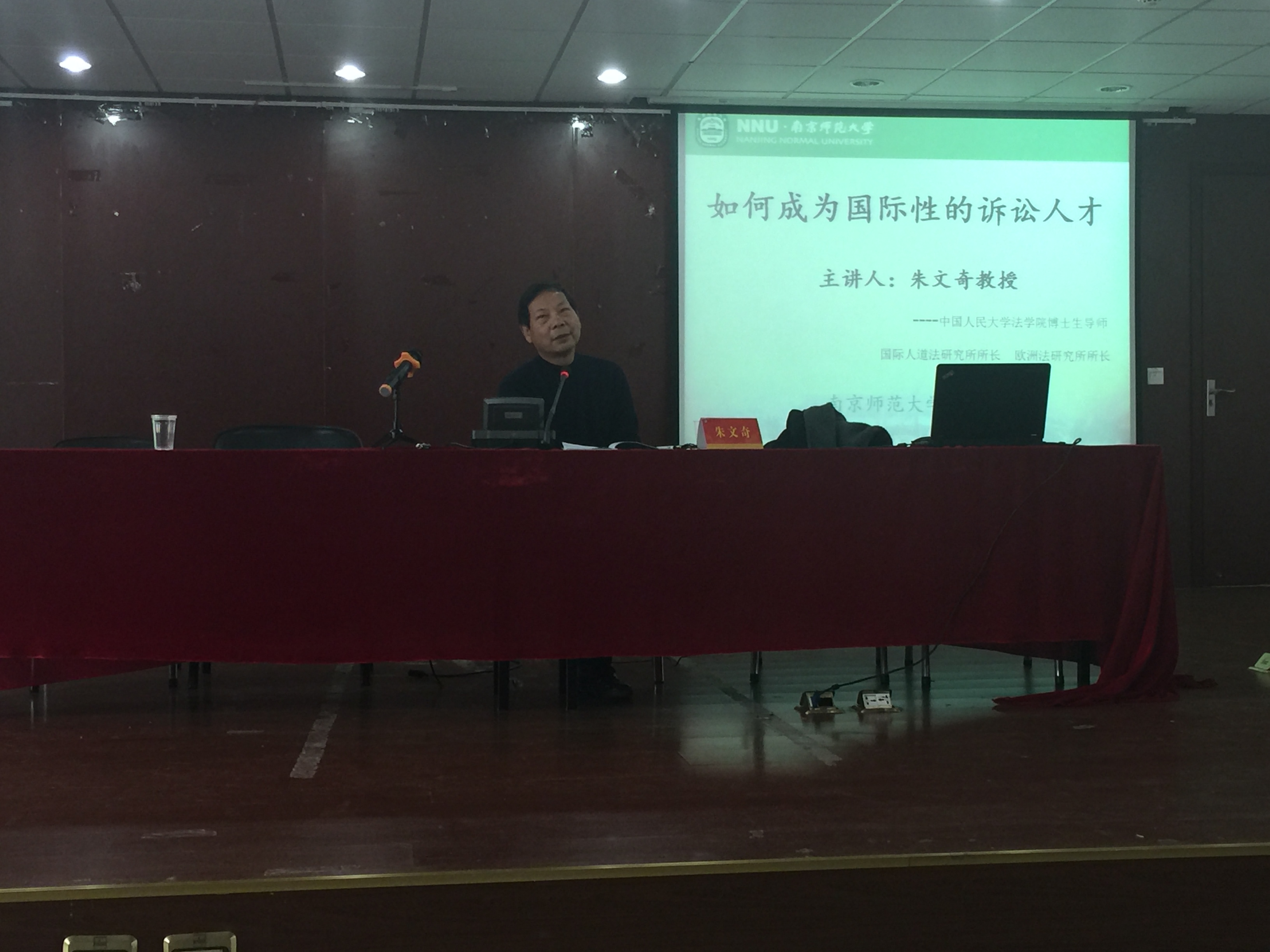 朱文奇教授从最新的10.27日“美国军舰进入南海”事件引出他的谈话,剖析了自己关于该事件的独特看法,他认为美国军舰来了,不仅来了而且耀武扬威的告诉中国将在南海巡航常态化。这等于告诉中国美国的准军事力量可以在中国海域自由航行,这种赤行为裸裸地侵犯中国国家主权。他一直将自己看作一个国际公民,更加鼓励我们从“国际法人”的视角来看待古今中外发生的一系列事件。就如何拥有“国际法人”的视角以及如何成为国际性的诉讼人才提出了一些建议和意见。第一,他说我们中国缺少自己的诉讼人才即国际性的诉讼人才,教导我们平时生活中就要关注国际事件,培养国际视角,不要被动地接受别人关于事件的看法而是要有自己的思考,并且长久地坚持下去;第二,朱教授提出国际法人才的理念,国际法博大精深,其中的法律问题也纷繁复杂,虽然刚开始接触时会觉得晦涩难懂,但是其中的道理却是最为普遍和熟知的。我们缺少这方面的人才,又怎么可能顺利解决我国在国际事务中遇到的麻烦和问题呢?故我们应该将国际法当作一门学问进行深刻地钻研和理解。第三,朱教授说锻炼人才的过程就是让大家出思想的过程。我们每个人想的都不一样,对每件事的看法更是不一,怎样将大家的思想显现出来就是培养锻炼人才的艰难过程。