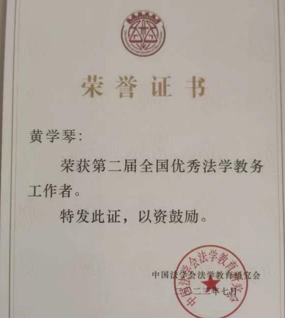 2023年7月,中国法学会法学教育研究会组织开展第二届“全国优秀法学教务工作者”评选表彰活动,来自北京大学、中国人民大学等30 个高校的法学教务工作者参评。经过专家评审,研究会会长、副会长审议通过,网上公示等环节,我校博彩网址大全