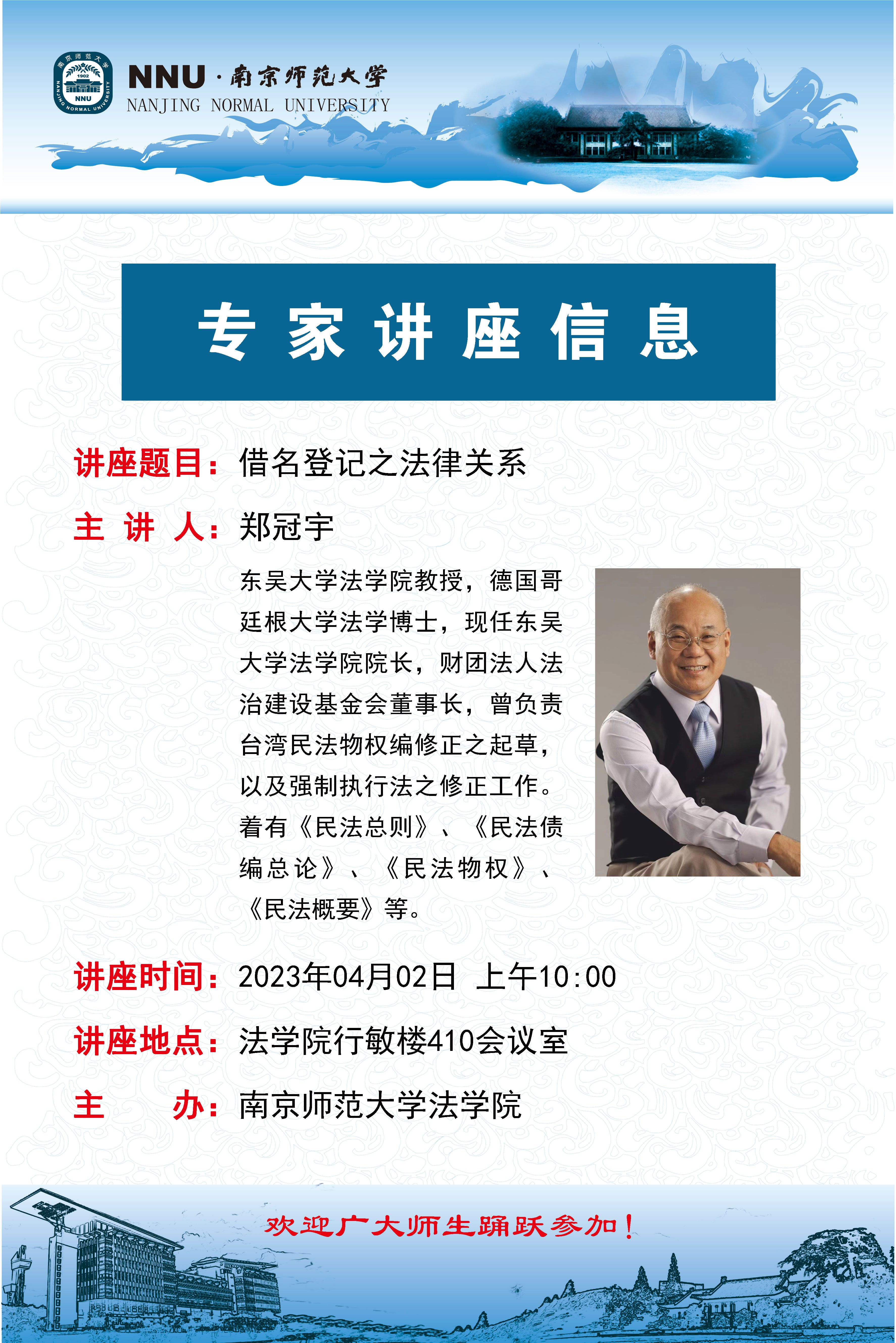 东吴大学博彩网址大全 郑冠宇教授讲座信息