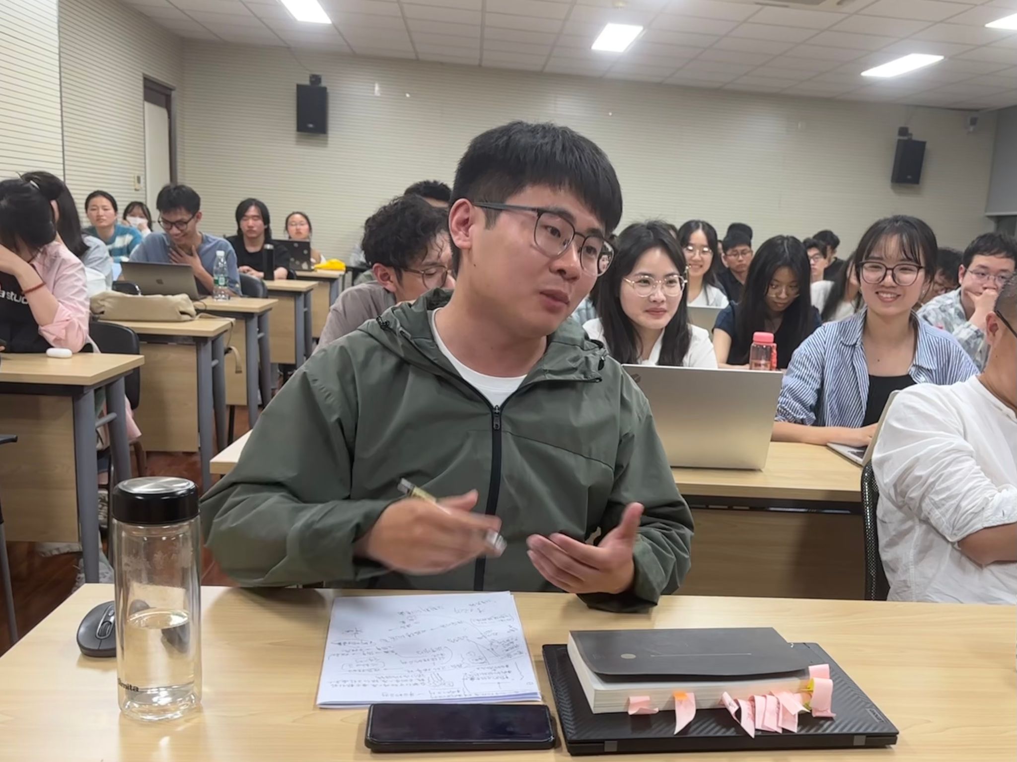 随后桑本谦教授与在场的同学们进行了交流互动。有同学提出除了法律经济学中的低成本承担责任原则,是否还有类似此种具理论直觉的理由。桑本谦教授表示法律中实际存在较多循环往复的论证,存在众多是借口而非理由、是修辞而非论证的情形。桑本谦教授由此提出问题并简单交代了自己的研究路径和理论探索历程。有同学对桑老师此次讲座的要点和感悟进行了简要分享,指出了最小成本担责、事前事后分析及法经济学规范化不足等问题。