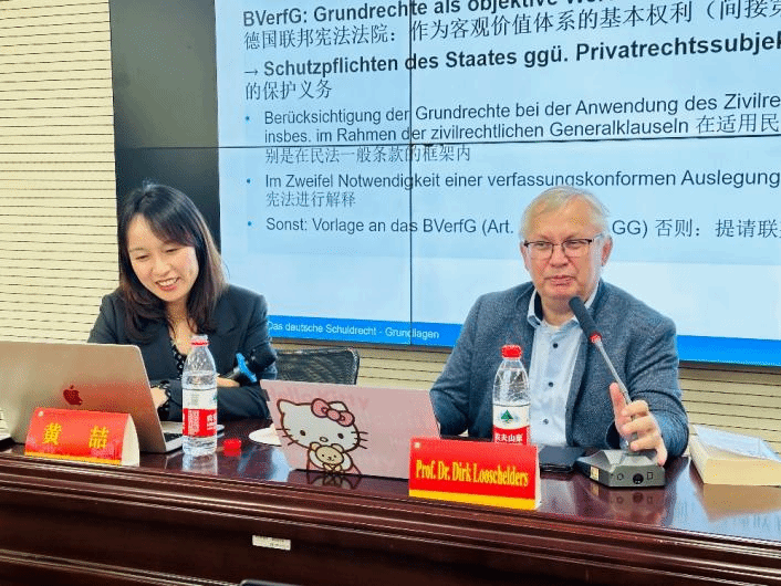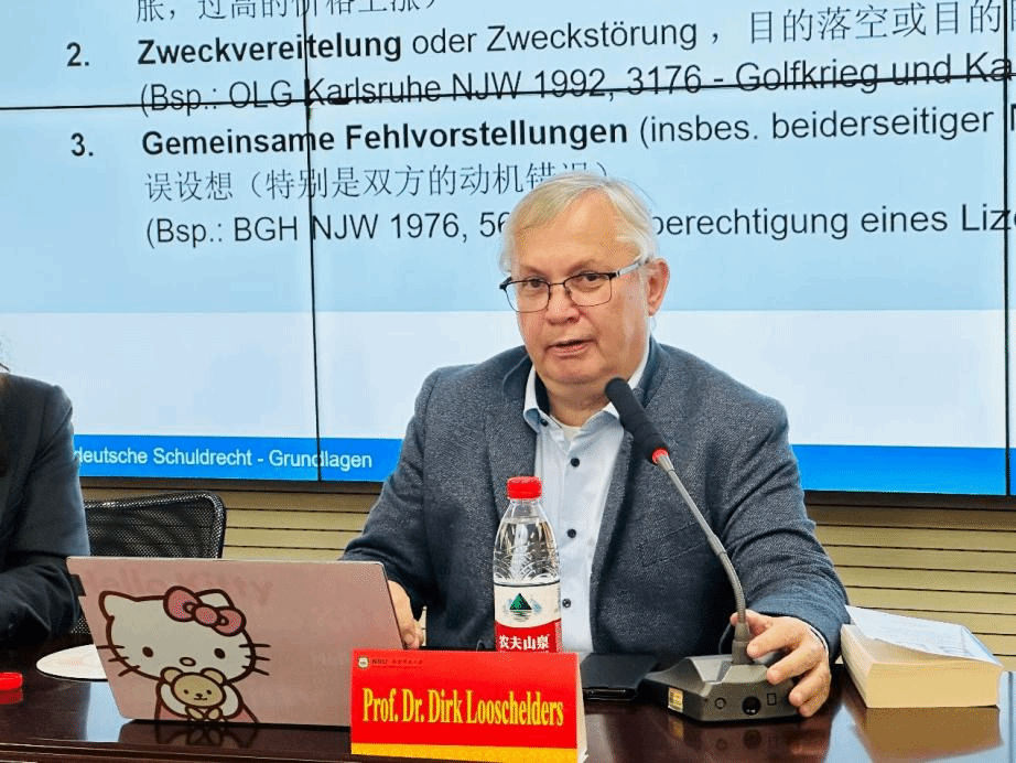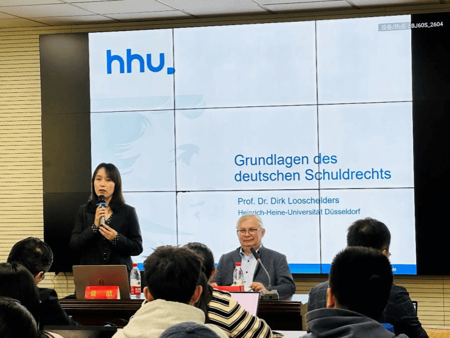 讲座最后,黄喆教授对Dirk Looschelders教授的到来表示诚挚的感谢,讲座在大家热烈的掌声中结束。此次讲座聚焦德国债法的理论体系和特色规定,启发同学们从比较法的角度对债法展开进一步的思考,激发了同学们的学术热情,营造了良好的涉外学术交流氛围。