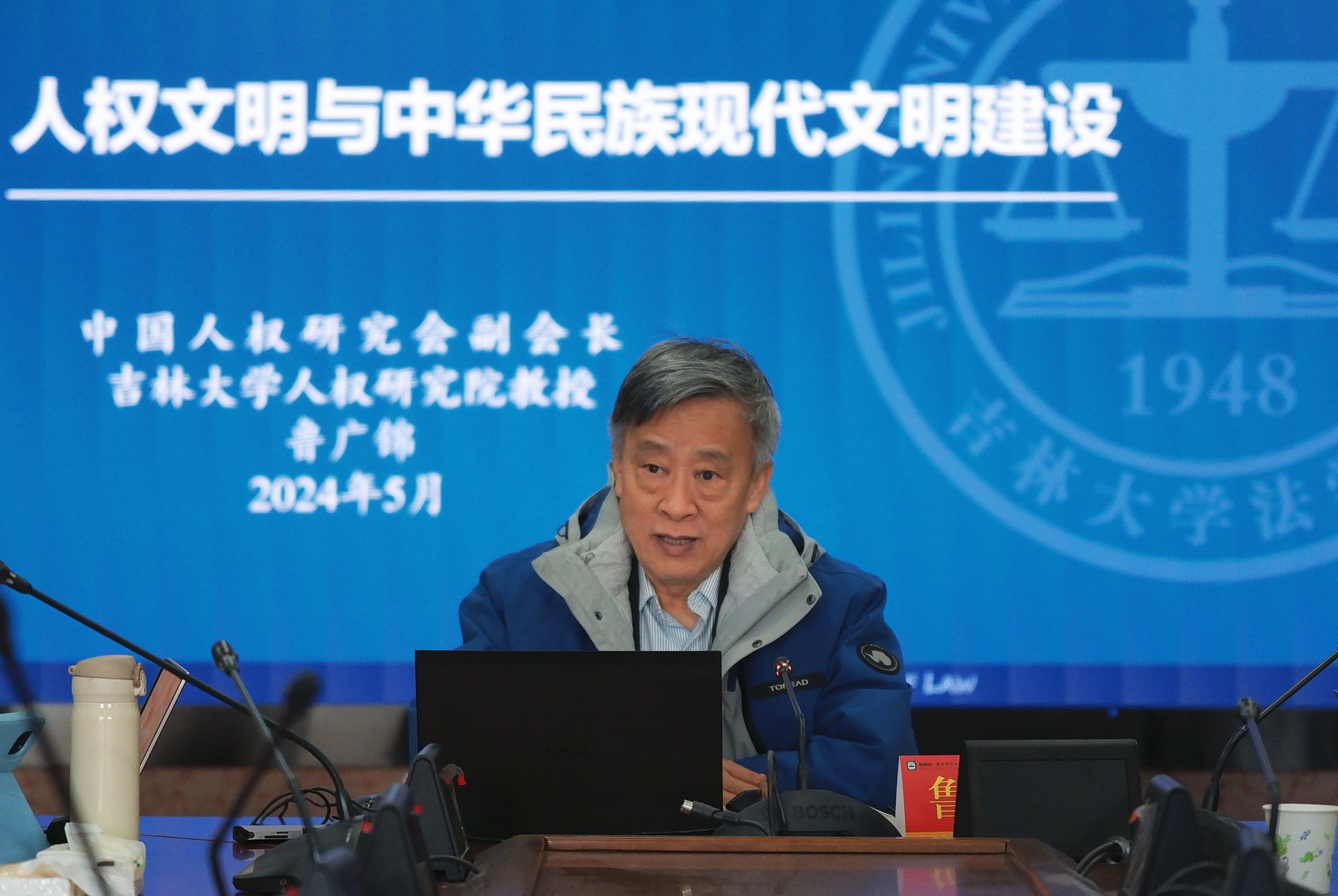 讲座伊始,鲁广锦教授详细阐述了人类文明的内涵,包括尊重人的生命和价值、解放人并使人的基本权利免遭侵犯、保障人人享有基本人权以及创造一个有利于人的自由而全面发展的环境。鲁广锦教授提出,人类文明的发展是围绕人之为人所应有的权利不断规范和创制的过程,这一人权图谱反映了人类文明不断向更高水平发展的进程。