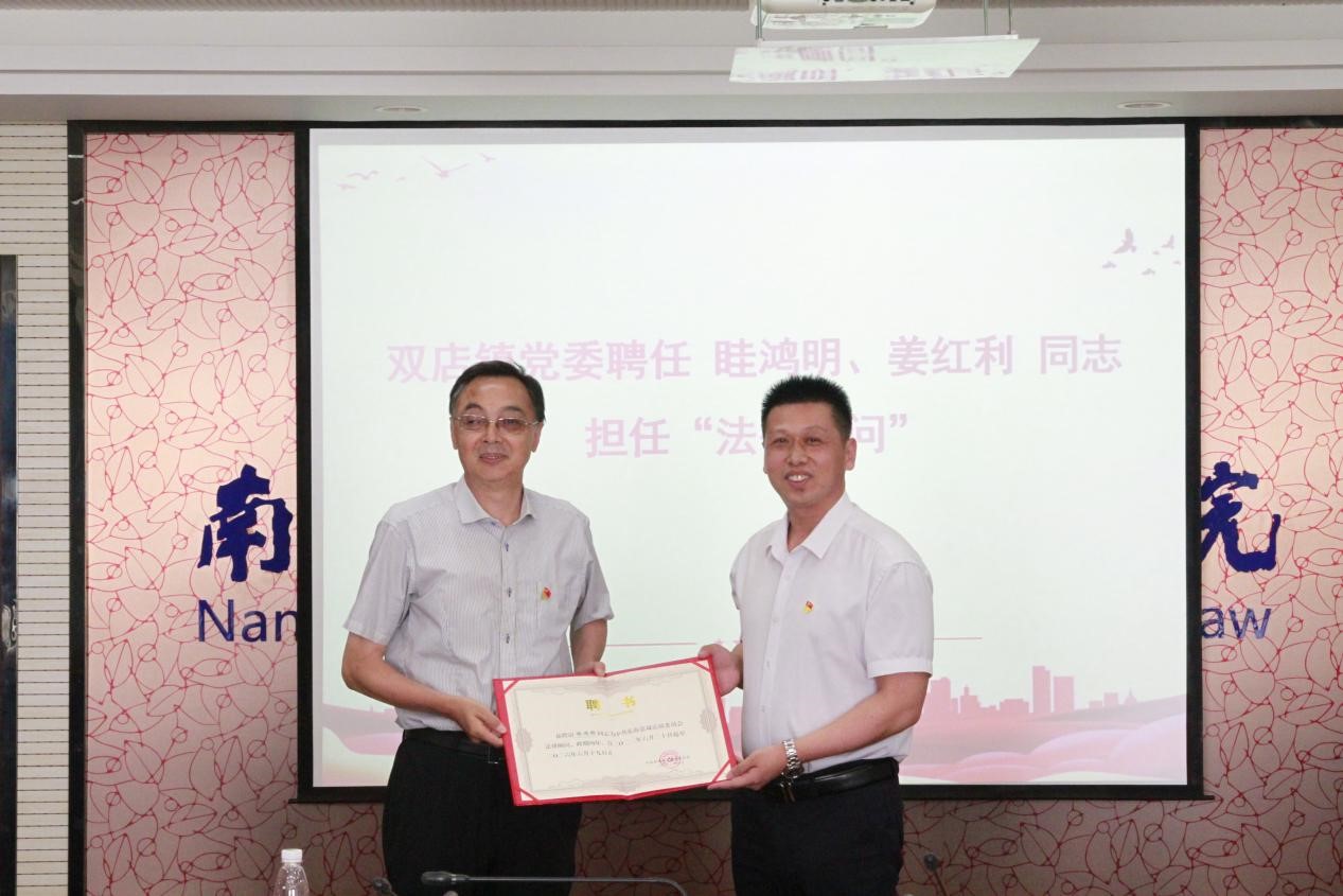 眭鸿明教授、姜红利教授颁发双店镇党委法律顾问聘书。
