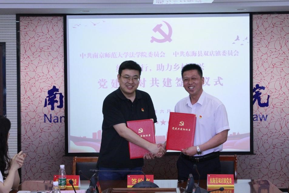 党委书记朱宁与东海县双店镇党委书记刘斌代表双方党委共同签署了党建结对共建协议书。