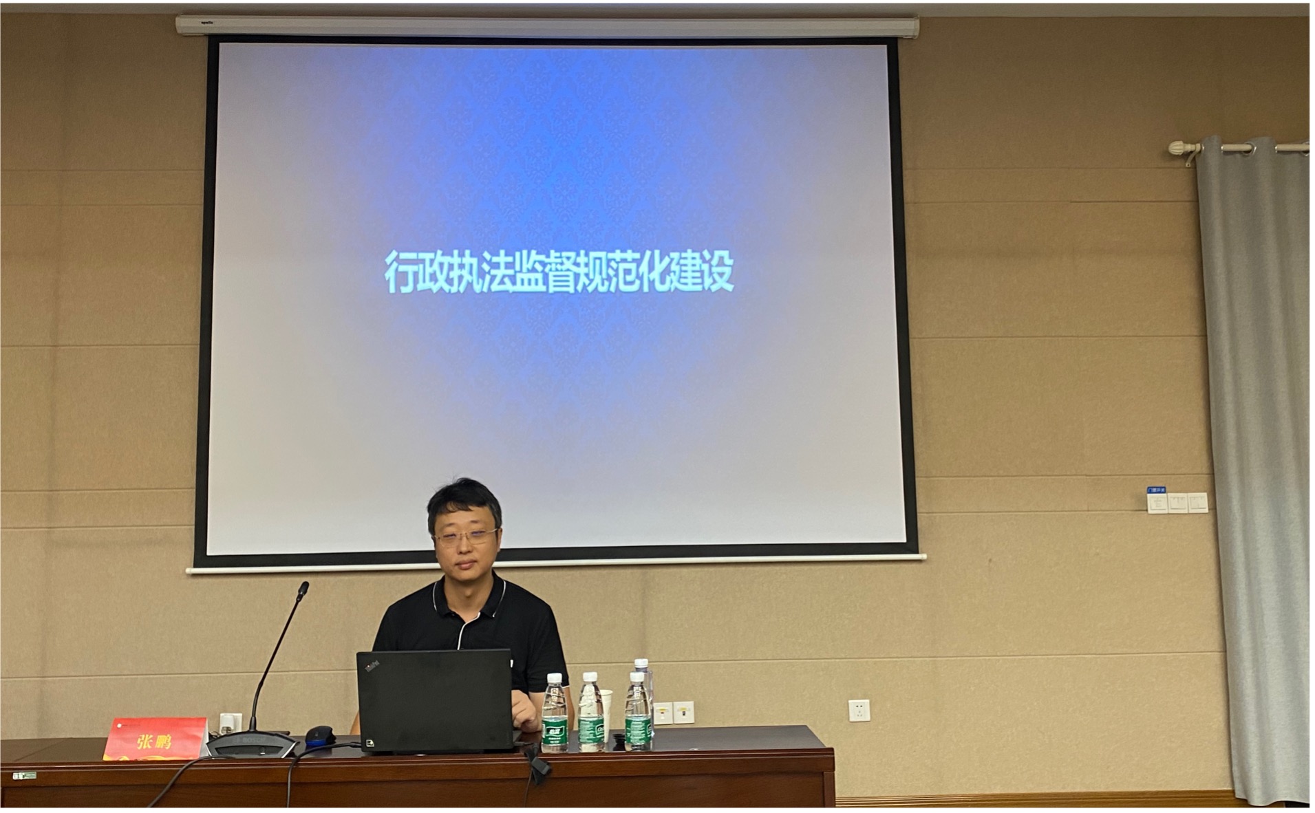 副教授张鹏以“行政执法监督规范化建设”为主题开展讲座,帮助学员在工作中养成法律思维习惯,加强法律知识的学习,提高法治思维能力。