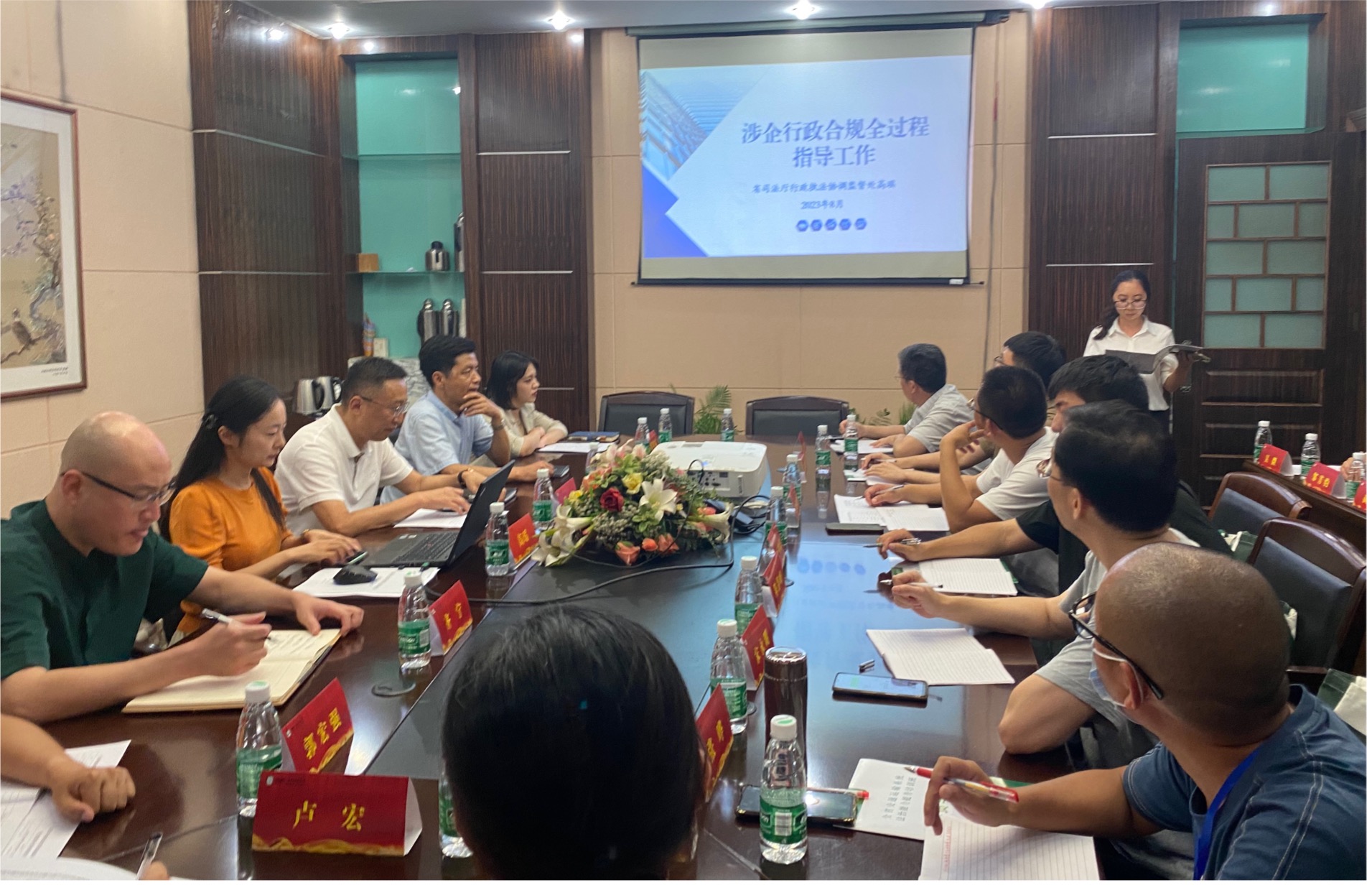15日晚,来自省交通运输厅、省交通综合执法局以及来自各地市交通运输系统涉企相关岗位的20余位工作者参与了涉企行政合规指导工作座谈会,江苏省交通运输厅法规处处长苏用、江苏省司法厅行政执法协调监督处一级主任科员高瑶出席了座谈会,高瑶做主题分享。
