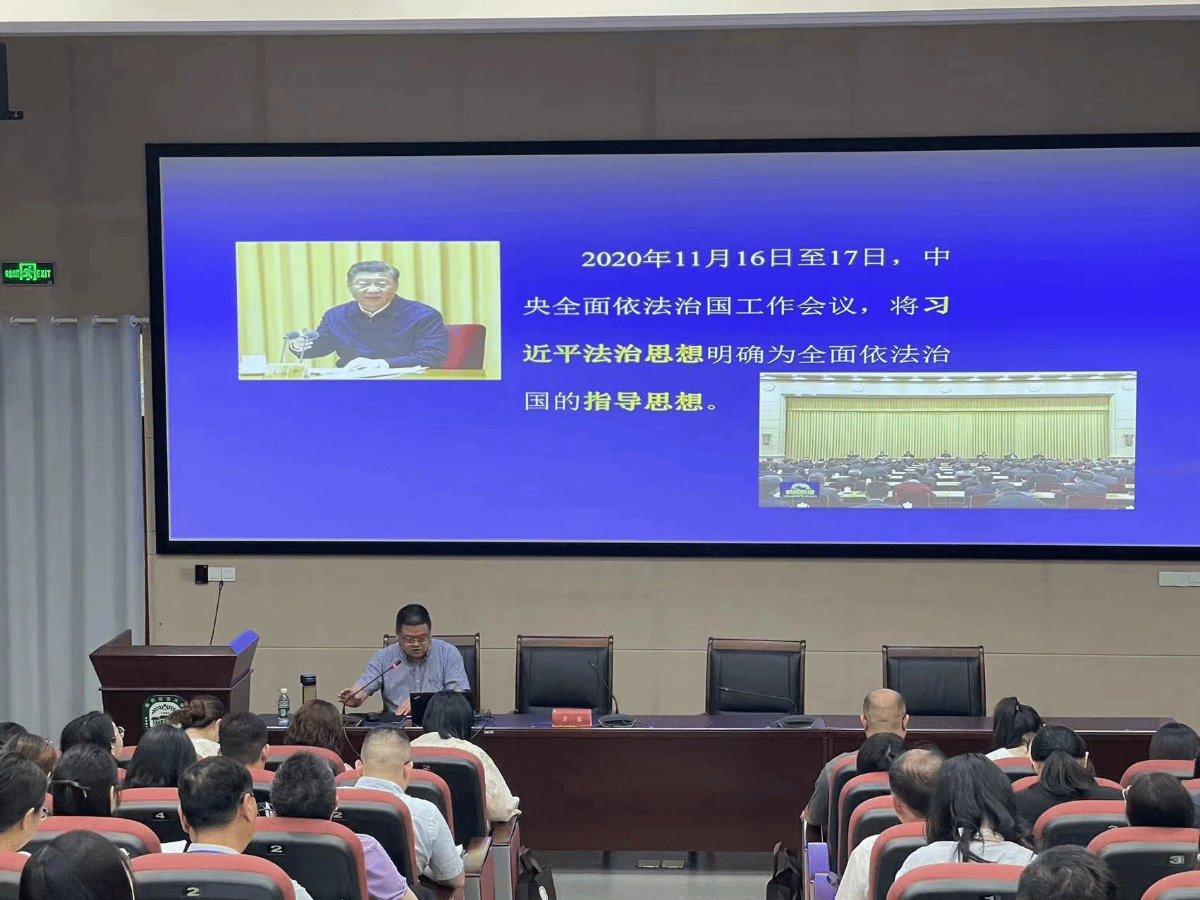 院长方乐教授围绕“习近平法治思想的内涵、发展和实践要求”,从习近平法治思想的提出、核心要义、逻辑体系和实践要求四个方面,结合习近平法治思想的新发展和法治中国建设的新需求,进行了系统性的讲解。