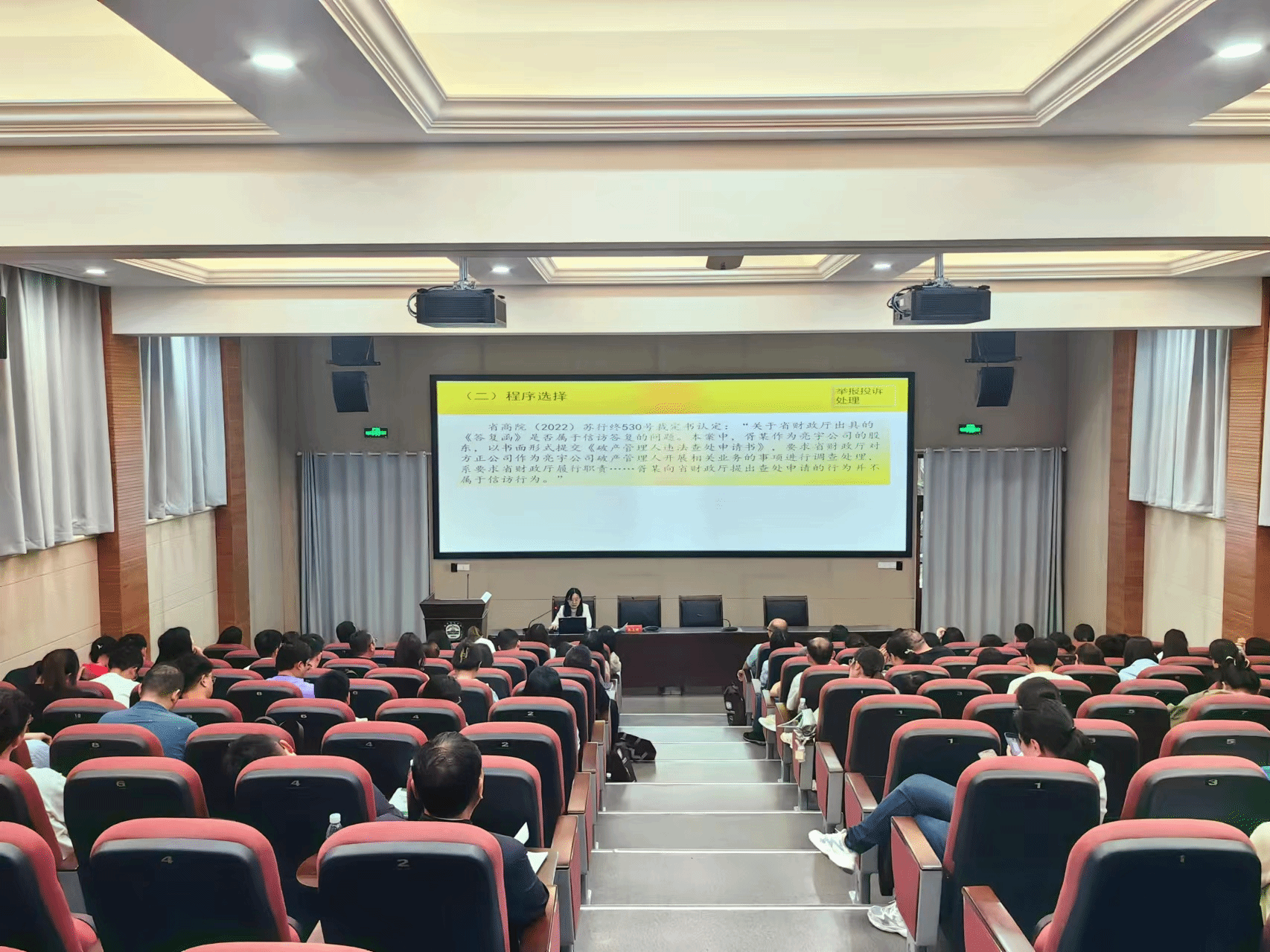 省高院行政庭综合组组长吕长城讲授《财政行政执法典型案例实务探析》,通过实际案例分析,从政府采购投诉处理类案件、政府信息公开答复类案件、行政处罚类案件讲解,将法规法条详细的讲解分析,让参训学员受益匪浅。